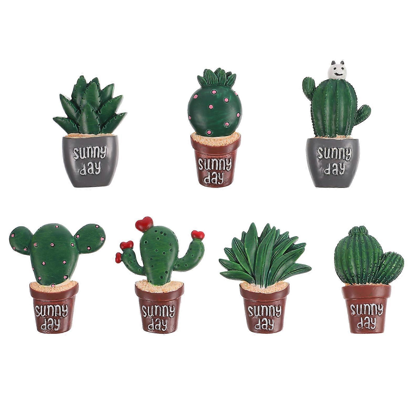 Tiny Fridge Decor Cactus Shape Resin Refrigerator Stickers Decorative Home Decoration 6x2cm 7Pcs
