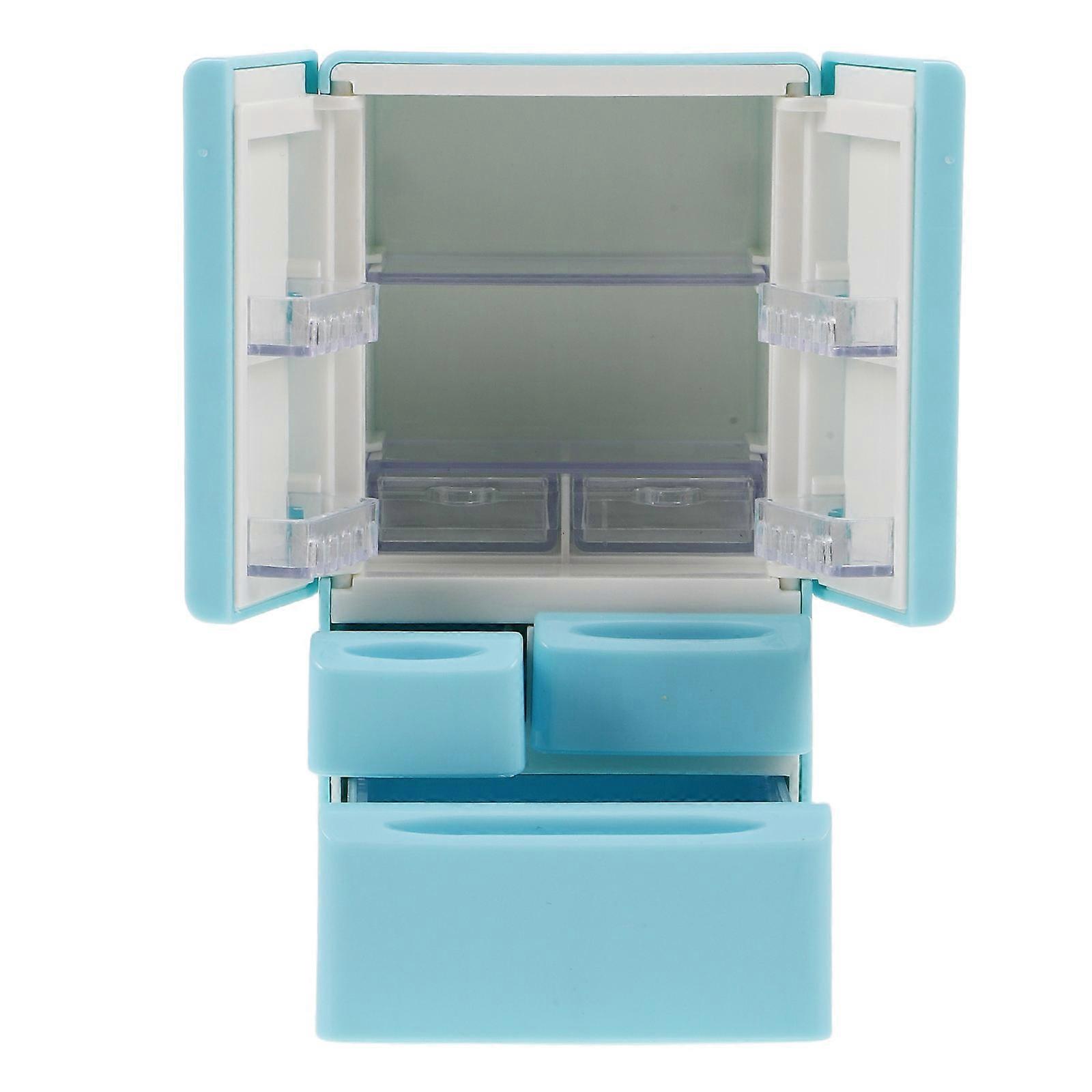 Miniature Blue Double Door Kitchen Refrigerator for Dollhouse – Realistic Craft Model for Pretend Play and Home Decor