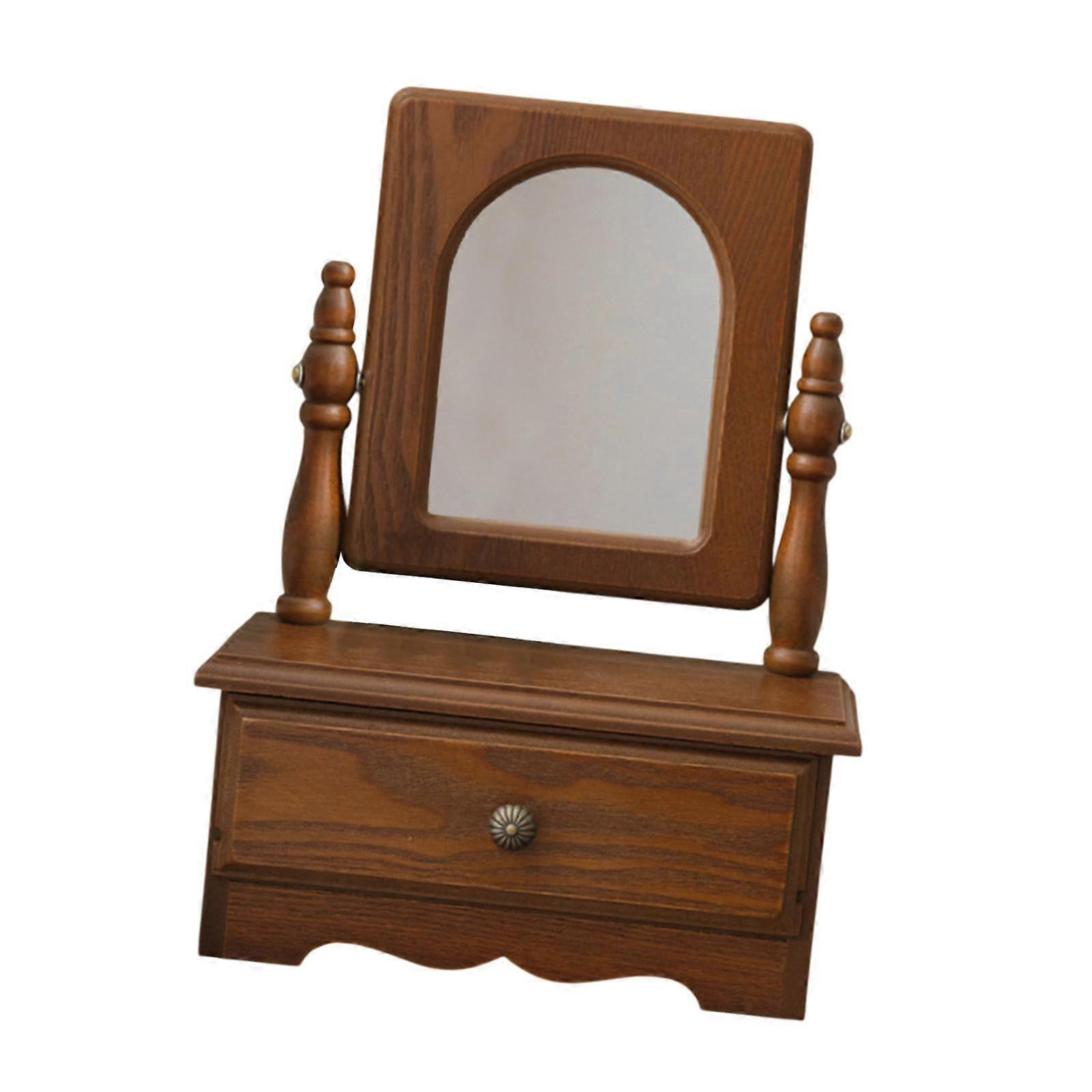Wood Desk Makeup Mirror Retro Tabletop Mirror for Bathroom Living Room Girl