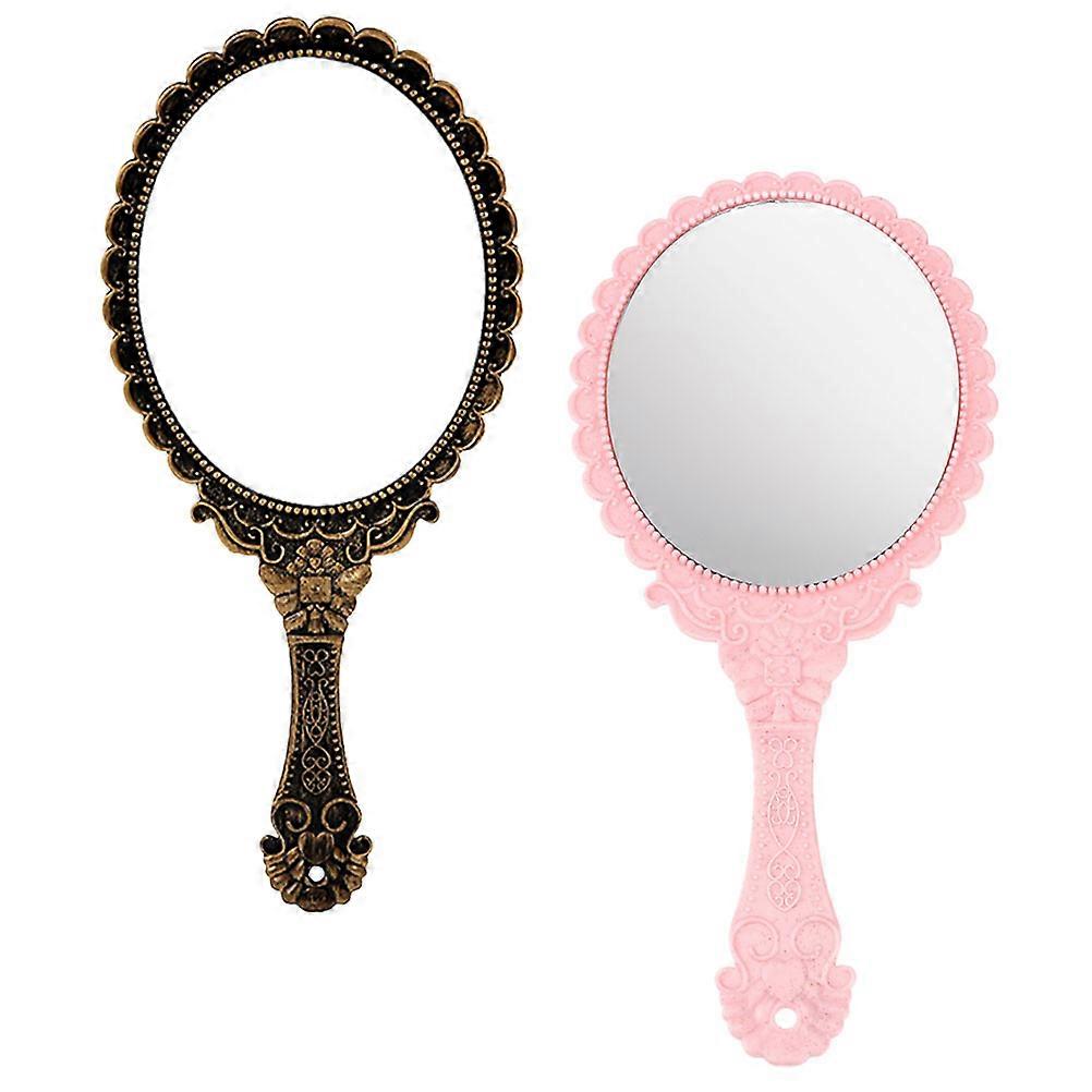 Lightweight Vintage Hand Mirrors Perfect For Women On The Beautiful Assorted Color 2Pcs