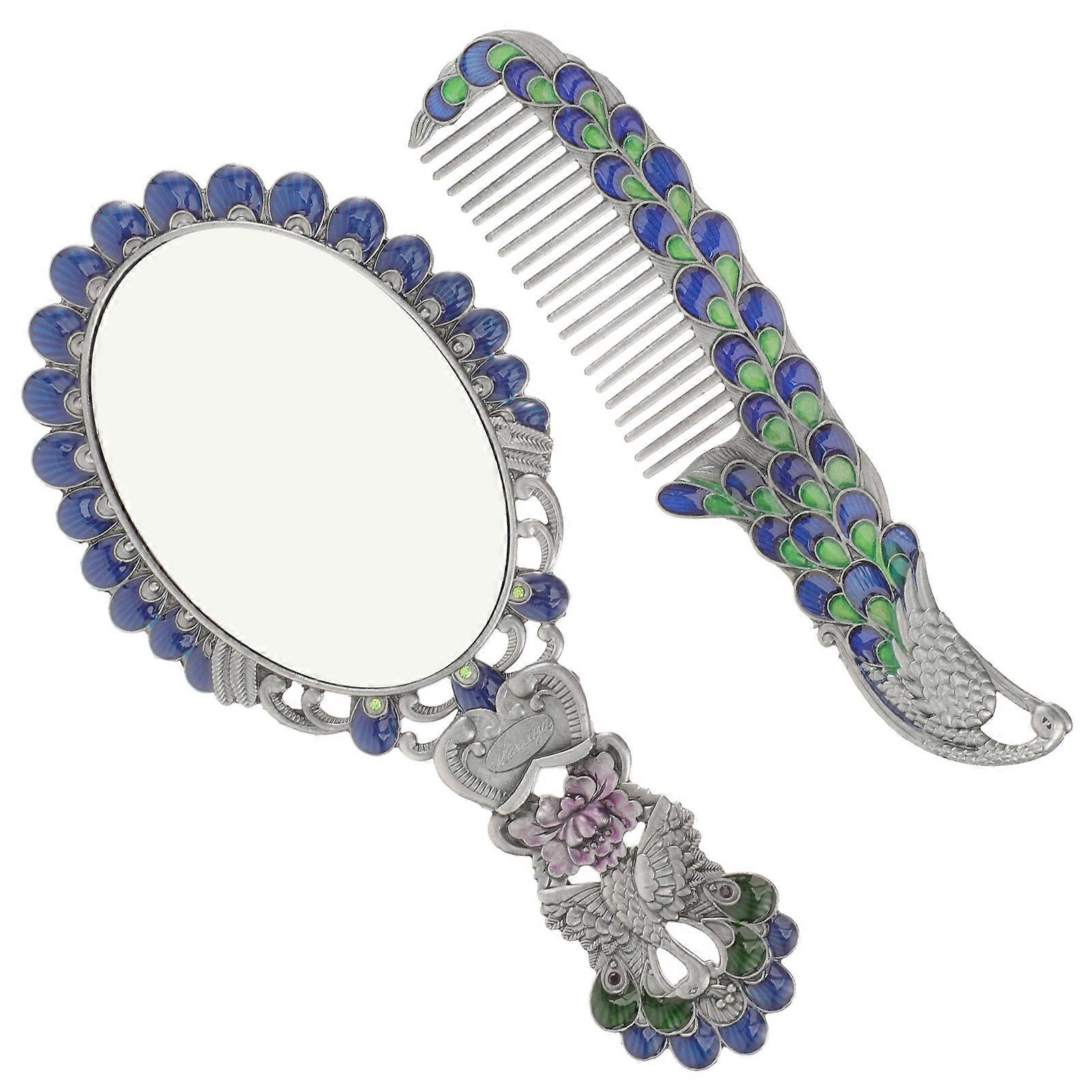 Compact Hand Mirror Rectangular Shape Vintage Style Beauty Mirror Daily Makeup Assorted Color 2 Sets