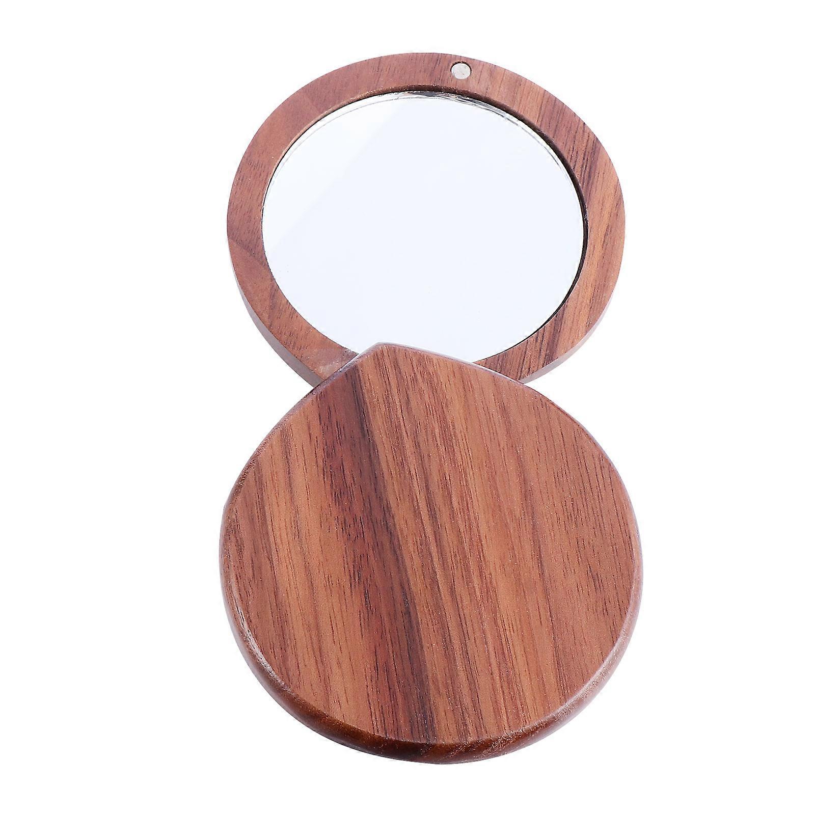 Portable Wooden Cosmetic Mirror for Women – Compact Travel Vanity Mirror, Durable Walnut Handheld Design for Outdoor & Makeup Use