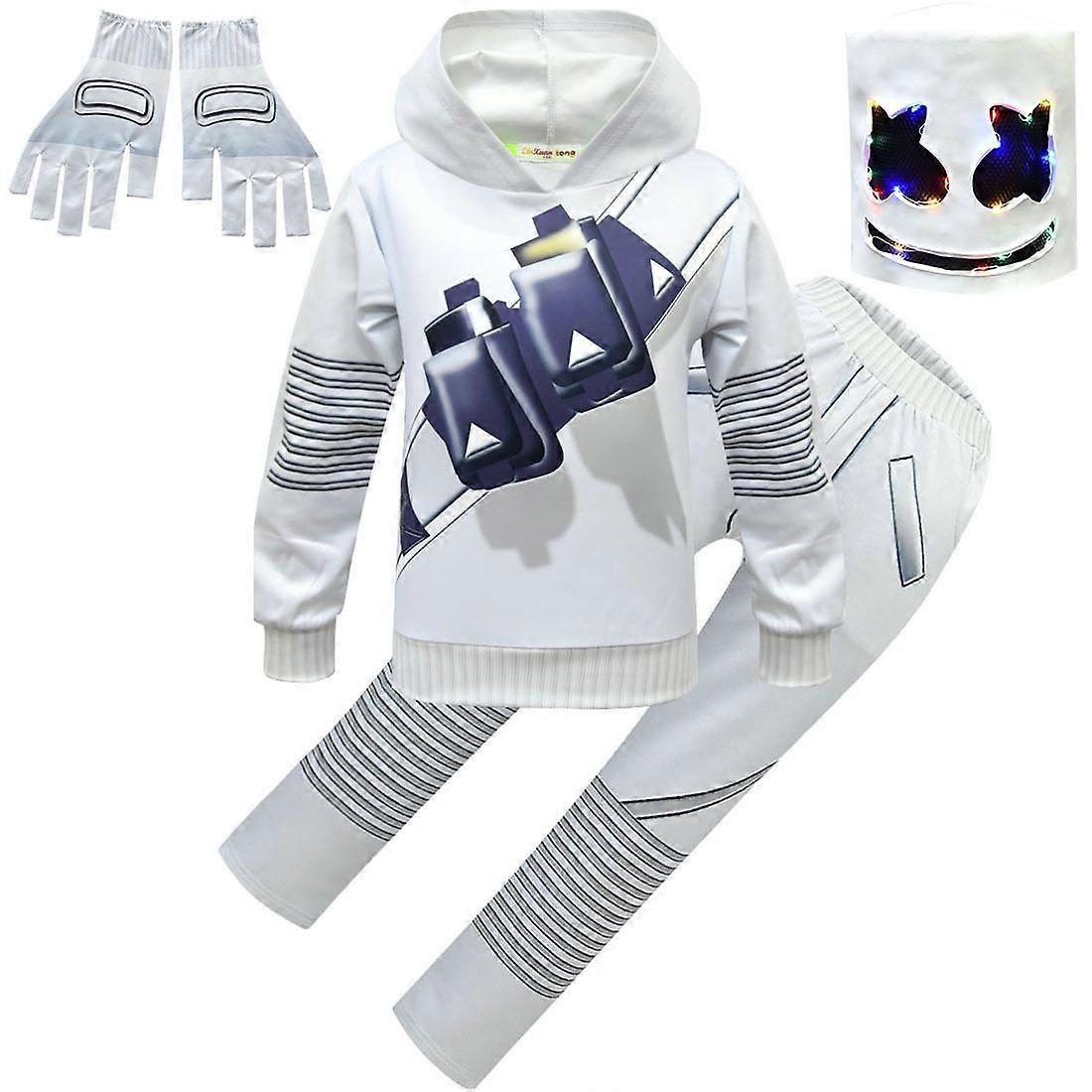 Marshmello DJ Kids Hoodie Set 2PCS Boys Girls Cosplay Outfit Cartoon Hooded Sweatshirt Pants