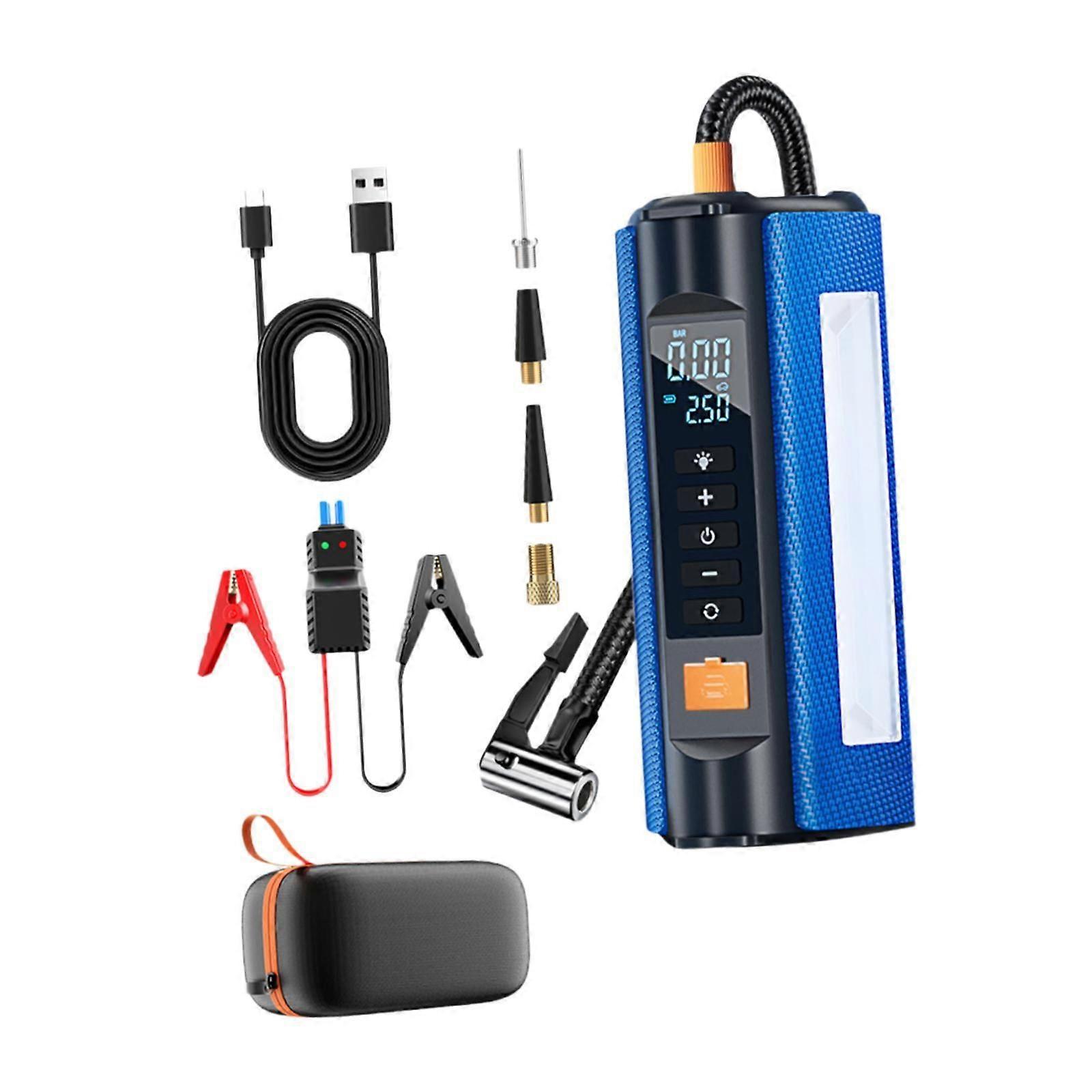 Description: Material: The car air pump is made of ABS material, which can be used for car emergency start, air pump, and portable power supply to meet various car emergency needsDesign: The air pump for car tires has a simple design, is small and portable, and has a fast inflation speed, which improves work efficiencyFunction: Electric tire inflator has functions such as preventing overcharging, over discharging, and short circuits to ensure safe use. It can also be used as a portable power source to charges electronic devicesEasy to use: The portable air compressors is simple and convenient to use, with clear buttons, and equipped with lights, which is easy to use in poor visibilityWide application: A car inflatable pump can inflate a bicycle, car, motorcycle tires, and balls.Inflation pressure range: 0.35-10.3Bar/5-150PSI, working current: 6A, working volts: 14.8V, Type C input: 5V/2A, USB output: 5V/2A Specification: Aluminum light cup use: 25h, COB light strip use: strong gear 7h weak gear 14h, charging time about 4 hours, suitable for models 12V 2.4L displacement and below, starting current 300A, peak current 1000A, battery capacity 1500mAh 4s Size Chart: 22 cmx9.5 cmx8.6 cm/8.66 inchx3.74 inchx3.39 inch Package Includes: 1 Set of Car Emergency Starting Power Supply Air Pump Note: Please allow slightly errors 1-2cm differences due to manual measurement.