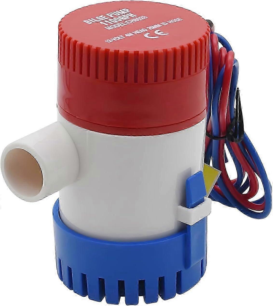 Flow rate (GPH): 1100 GPH, Voltage: 12V, Hose barb outlet: 1-1/8" (29 mm) The bilge pump 12v design features an optimised impeller design for greater water flow, higher flow rates and improved pumping efficiency. Latch type filter base, easy to install and disassemble, silent, no vibration Full submersible, quiet, efficient, long motor life. Quiet operation and a little fire protection. Stainless steel shaft, fully submersible, rust and corrosion resistant, requires separate float switch