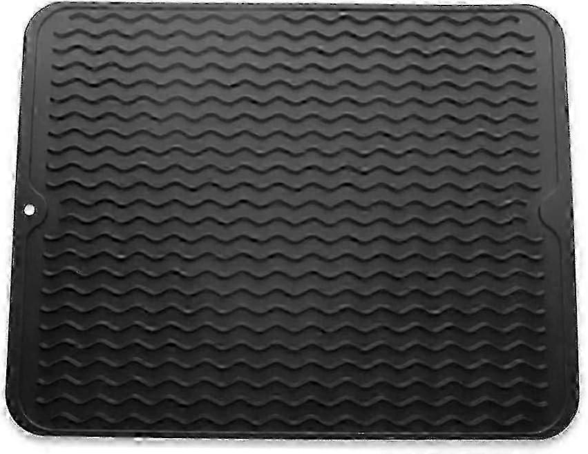 Large Heat Resistant Silicone Drip Mat for Sink - Black Dish Storage & Cutlery Protector with Premium Water-Resistant Design