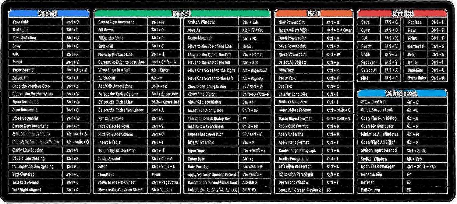 Extra Large XXL Keyboard Shortcuts Mouse Pad for Gamers