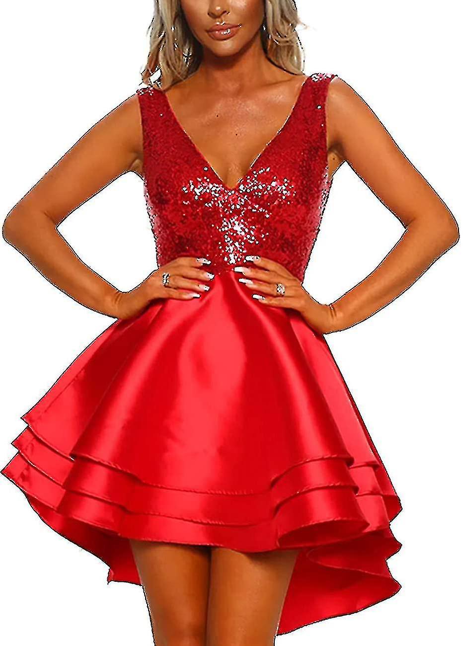 Fast Shipping 2023 Sequin Glitter V Neck Skater Mini Club Cocktail Party Swing Dress