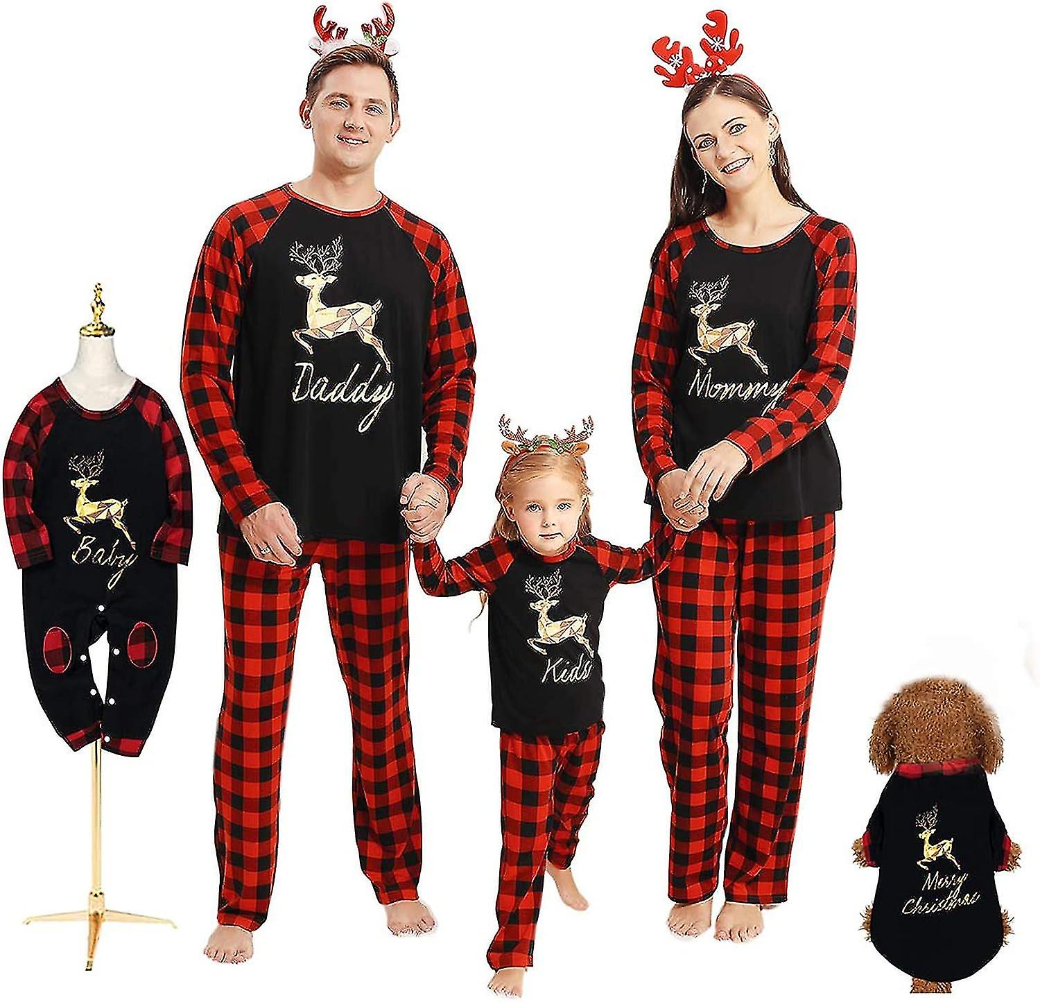 Family Christmas Matching Pyjamas Outfits Elk Plaid Nightwear Sleepwear Xmas Pajamas Holiday Loungewear For Dad Mom Kids Baby Pet