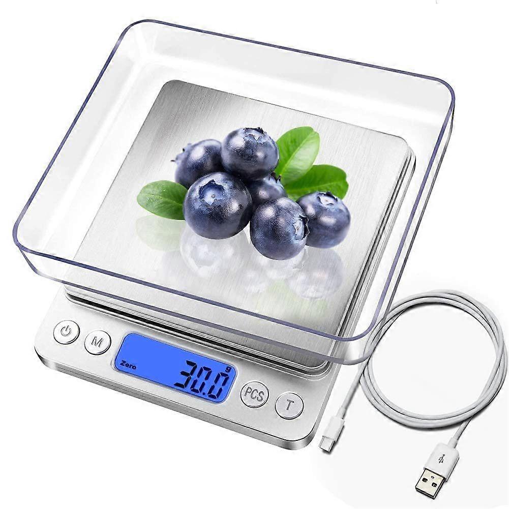 Digital Kitchen Scale, USB Charging, 3kg/0.1g, Mini Electric Kitchen Scale, Precision Scale, Waterproof and USB Rechargeable, Stainless Steel, for Ing