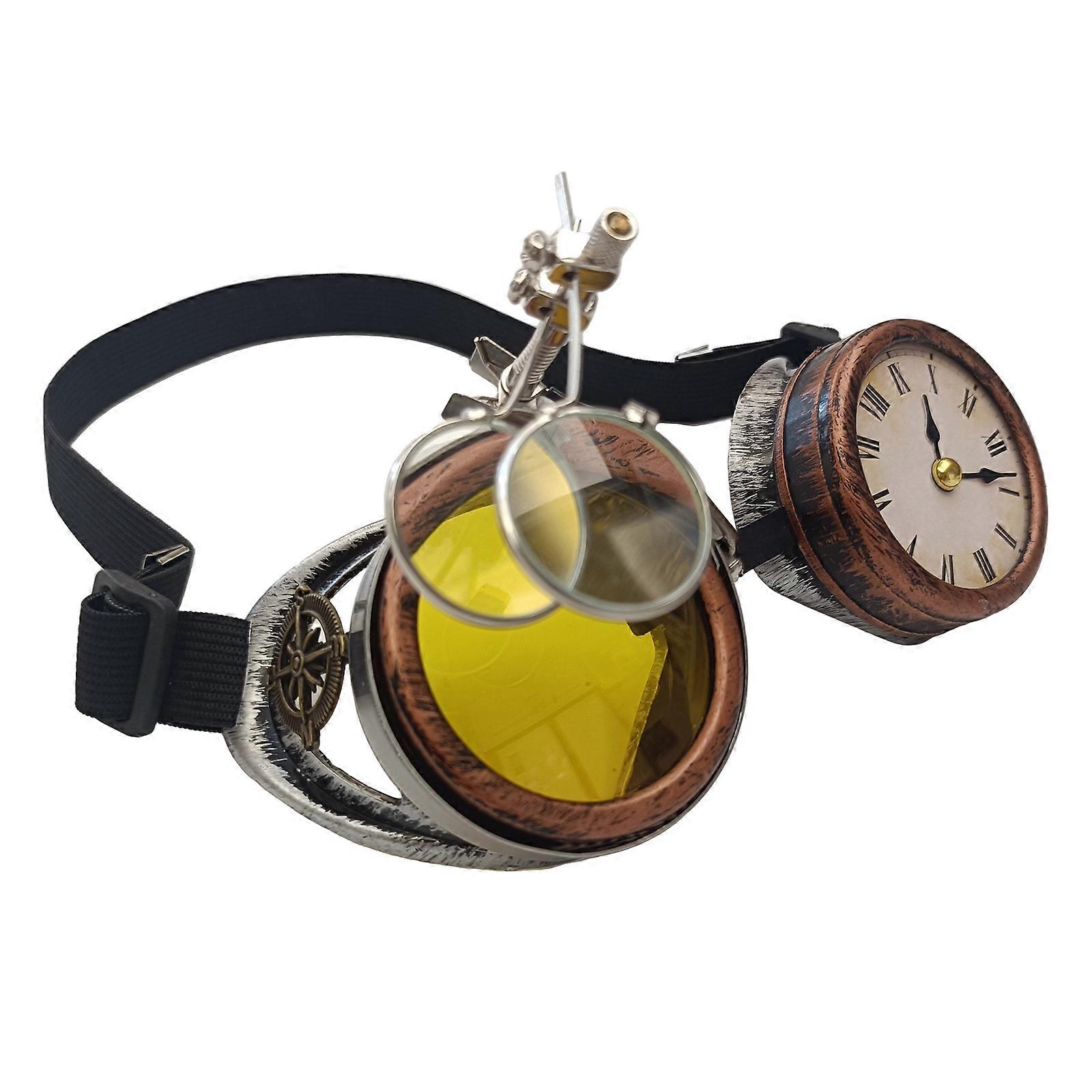 Gothic Glasses Steampunk Goggles with Clock Halloween Goggles Steampunk Decorative Glasses for Theme Parties ancient silver
