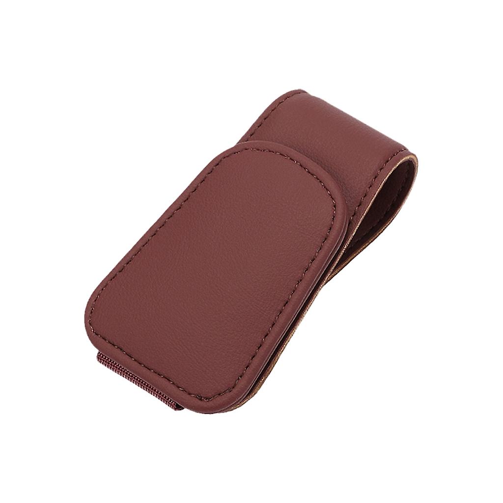 Car Sun Visor Glasses Mount Ticket Card Holder Magnetic Leather Hanger Clip