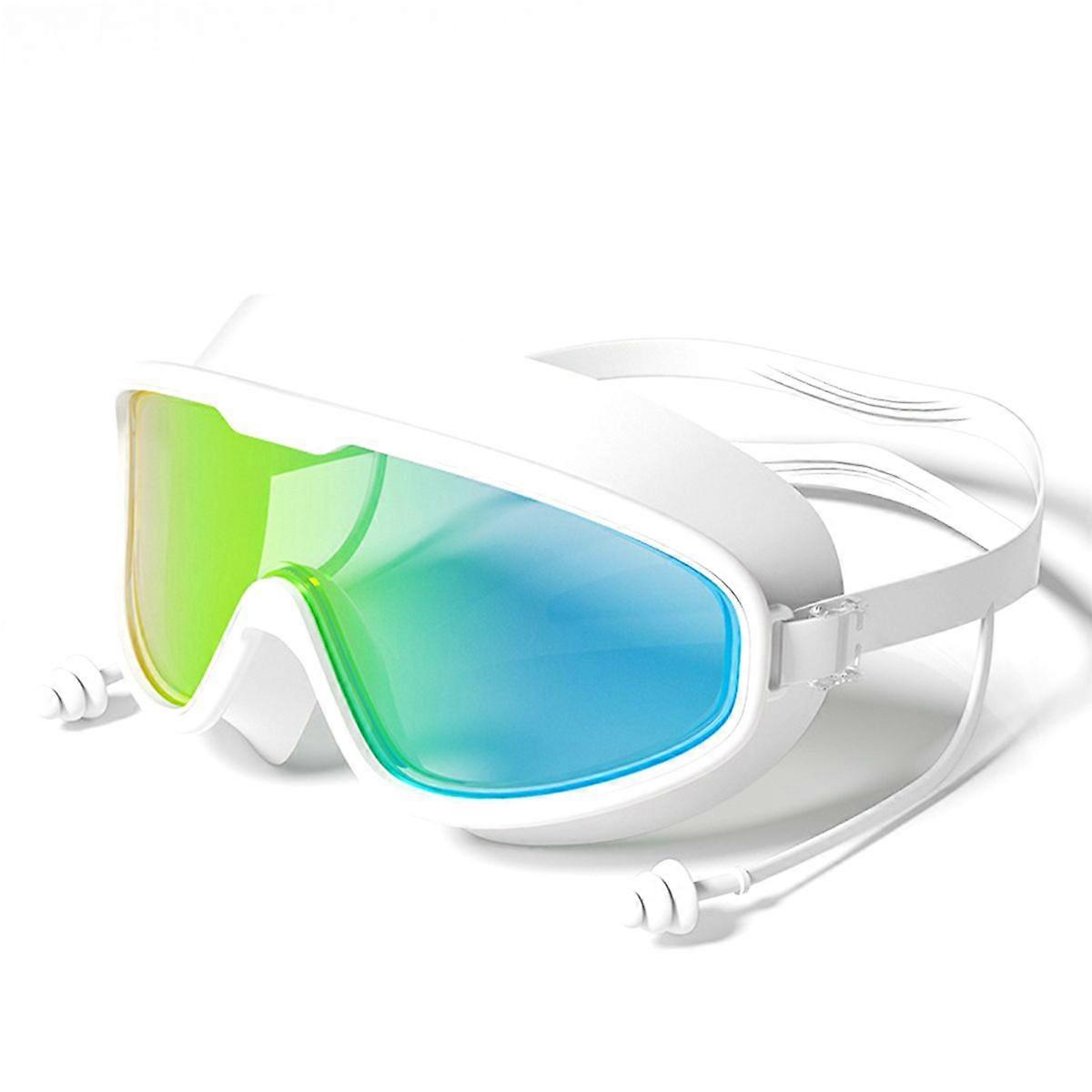Product Description: Swimming GogglesMaterial: PCPackage Contents: 1 x Swimming Goggles 1. Elastic Fabric Band: Unique design and beautiful fashion colors. More comfortable than silicone/PVC models. No more pulling or tangling hair. 2. Anti-Fog PC Lenses: Good impact resistance, higher impact resistance than tempered glass. The weight is one-third lighter than that of toughened glass diving goggles. It also offers UV protection for better eye protection. No longer need to worry about broken lenses hurting your children. 3. HD Panoramic View: The ultra-wide flat lenses of kids goggles give kids a clear panoramic view, no distortion of vision even in the glare on both sides, giving kids a super clear visual experience underwater and making the swimming process easier. safer. 4. It can reduce the water pressure on the eyes during swimming and diving by exhaling breath through the nose. This is also a friendly design for children who don't know how to stop breathing through their nose in the water. 5. Wide and Soft Silicone Gasket: The wide and soft silicone gasket of the swimming goggles for pool can stay firmly on children's faces, leaving no gaps and creating a waterproof seal.
