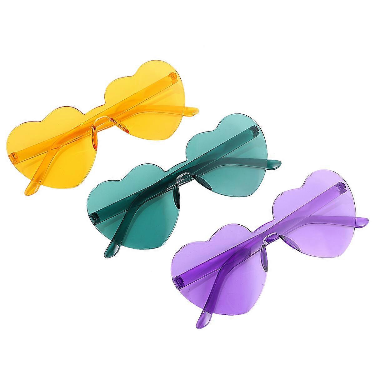 Fashion Heart Shaped Sunglasses 3Pcs For Girls Photography Daily Wear Assorted Color UV400 Protection