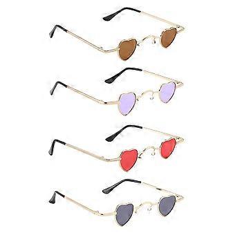 Heart Shaped Sunglasses UV Protection 4Set Shopping Photo Taking For Women Men Kids Gold Frame Red Lens