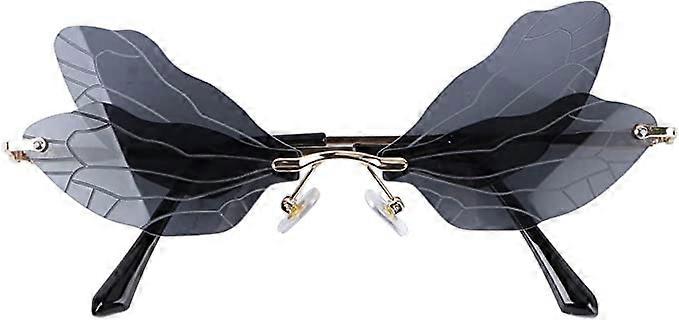 Vintage Rimless Sunglasses Funny Irregular Dragonfly Wings Glasses Photo Propsgreen