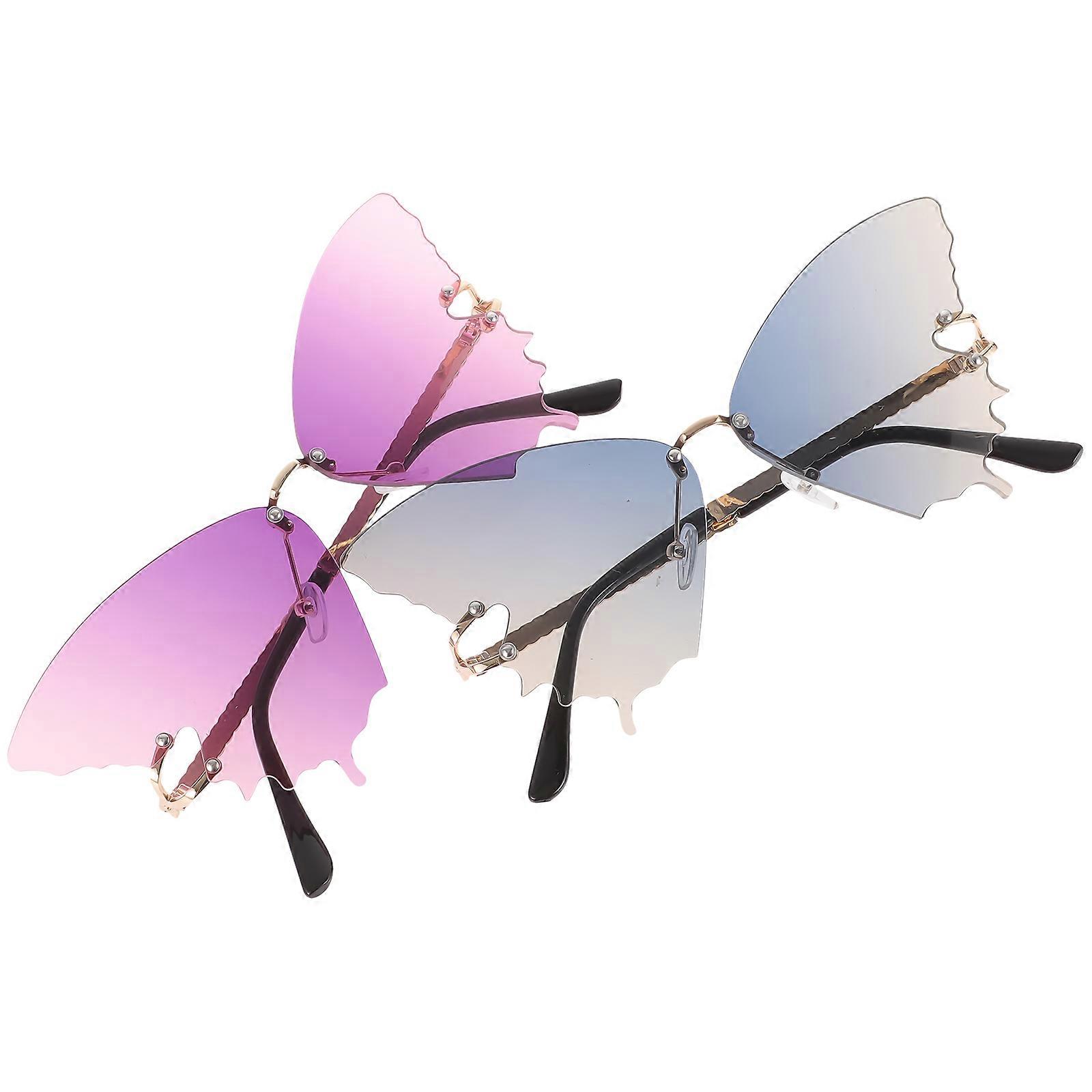 Rimless Irregular Design Sunglasses For Women Birthday Party Assorted Clarity 2Pcs
