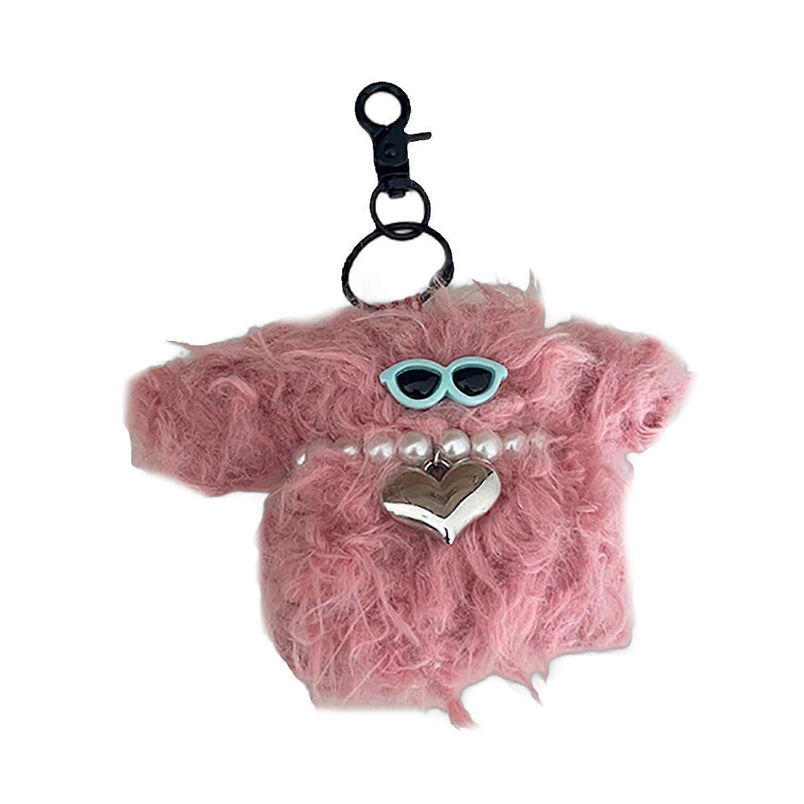 Fashion Sunglasses Plush Dog Keychain Pendant Sweet Ornament Pendant Keyring Backpack Decoration Charm Jewelry