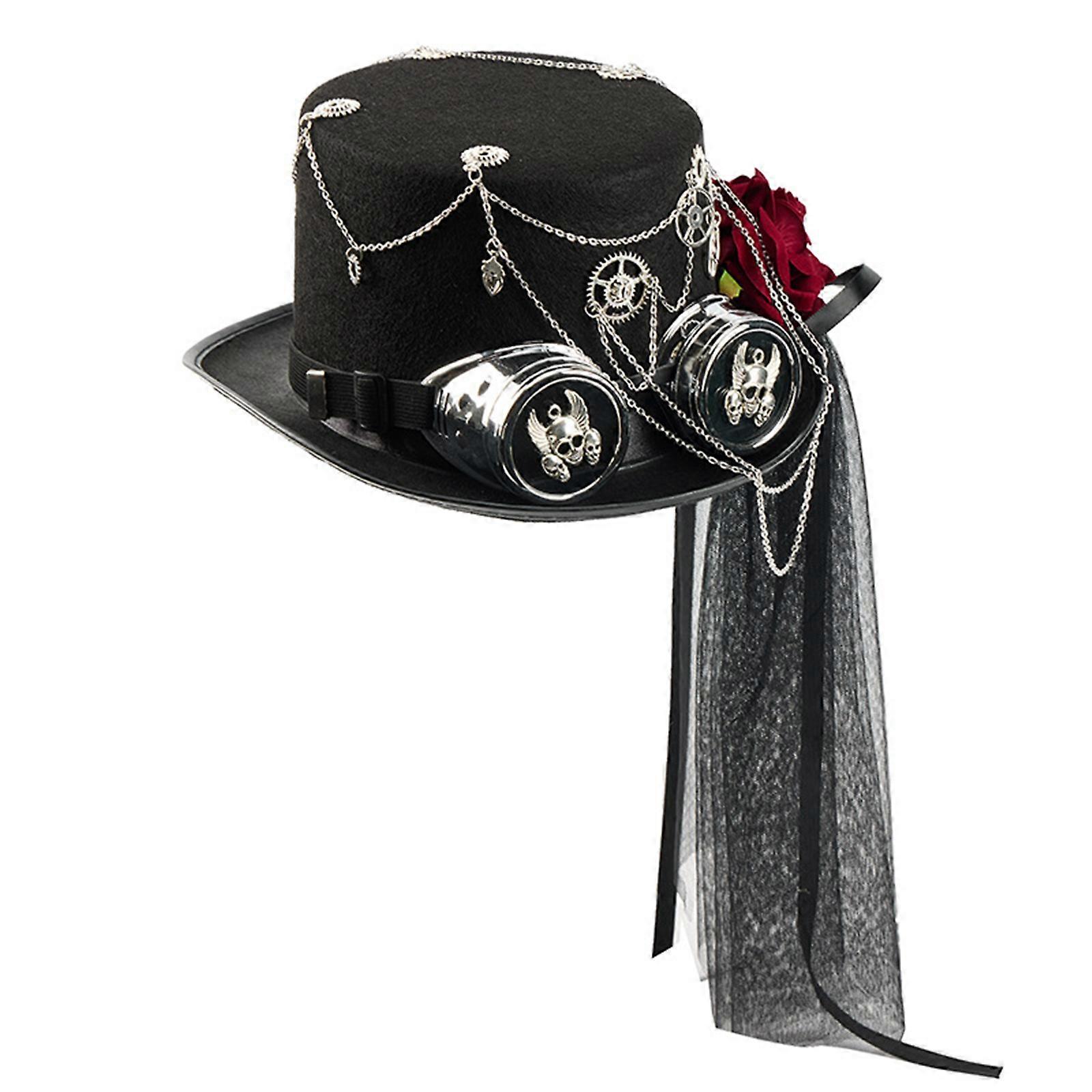 Steampunk Goggles Top Hat With Flower Chain Adjustable Headgear For Halloween Costume Parties Cosplay Lover Accessories Multicolor