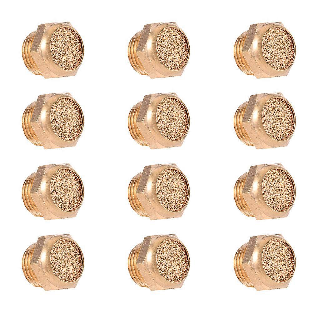 Pneumatic Muffler G1/4 Male Thread Copper For Pneumatic Tools 1.5X1.5cm 12Pcs