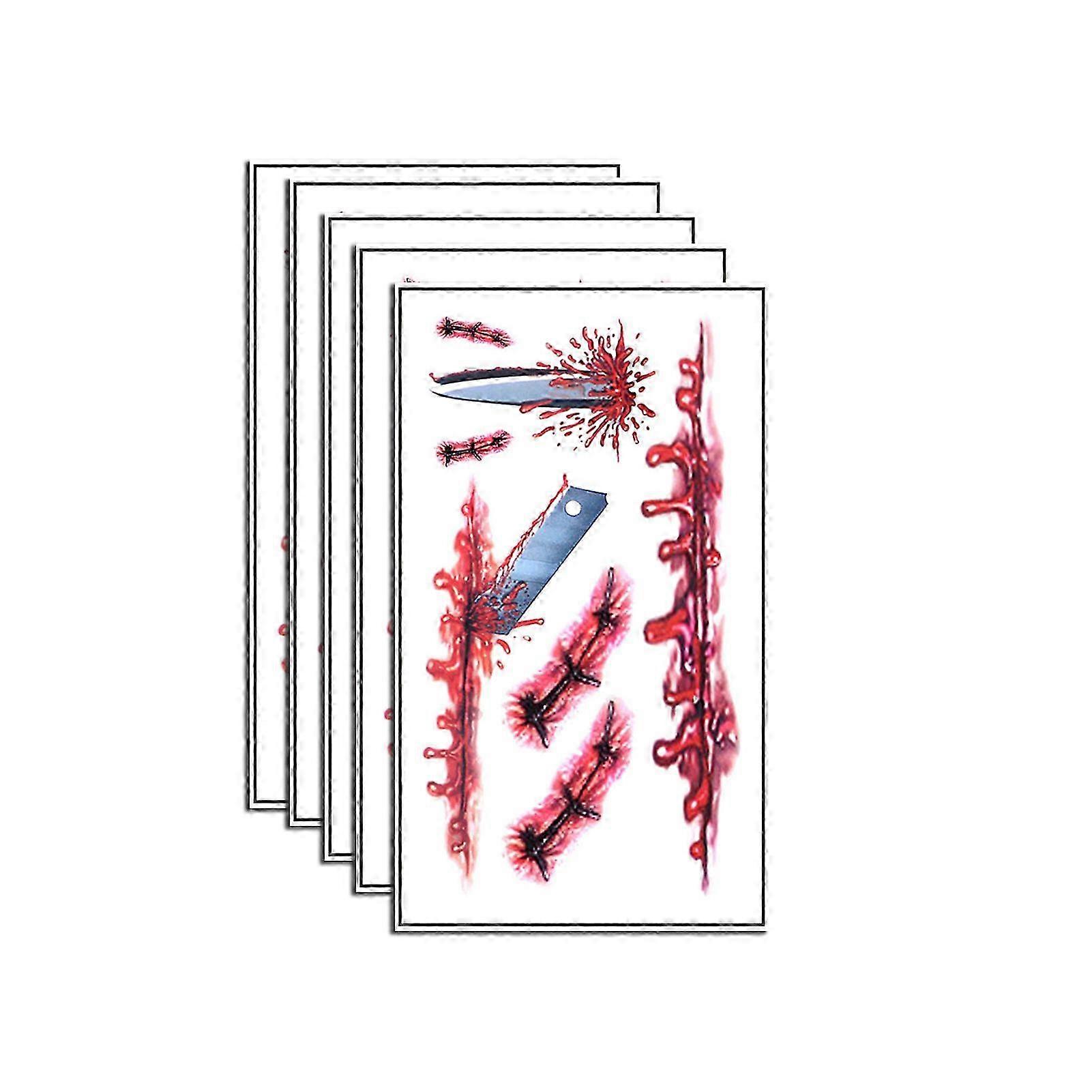 suitable for 5Pcs Halloween Waterproof Tattoo Stickers Scar Pattern One Time Design Tattoo Stickers for Parties Events-jc