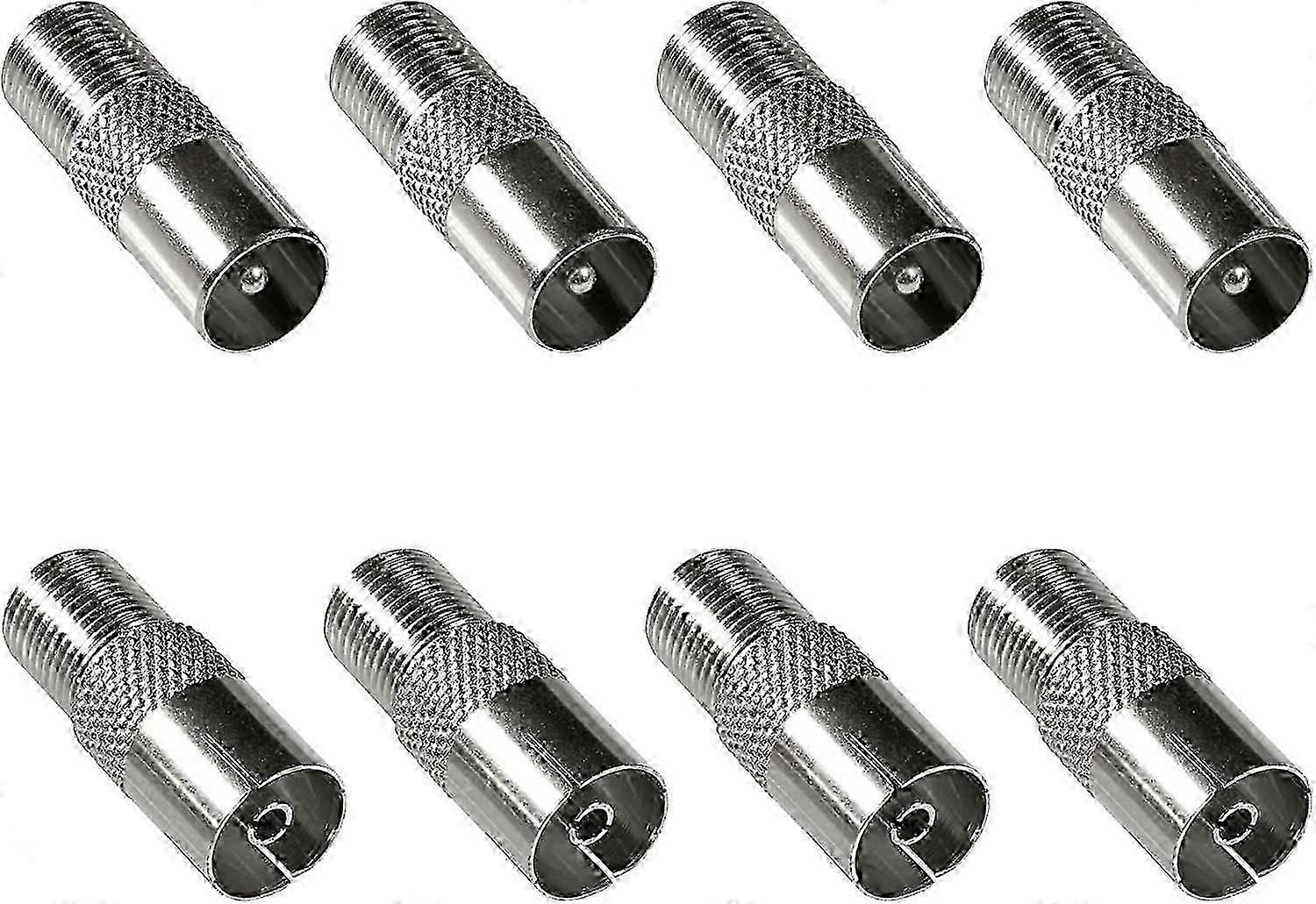 8X Coaxial Sat Antenna Adapter (4X F-Plug To Iec Antenna Plug, 4X To Iec Antenna Plug) Coaxial Connector For Coaxial - Antenna Cable, Silver