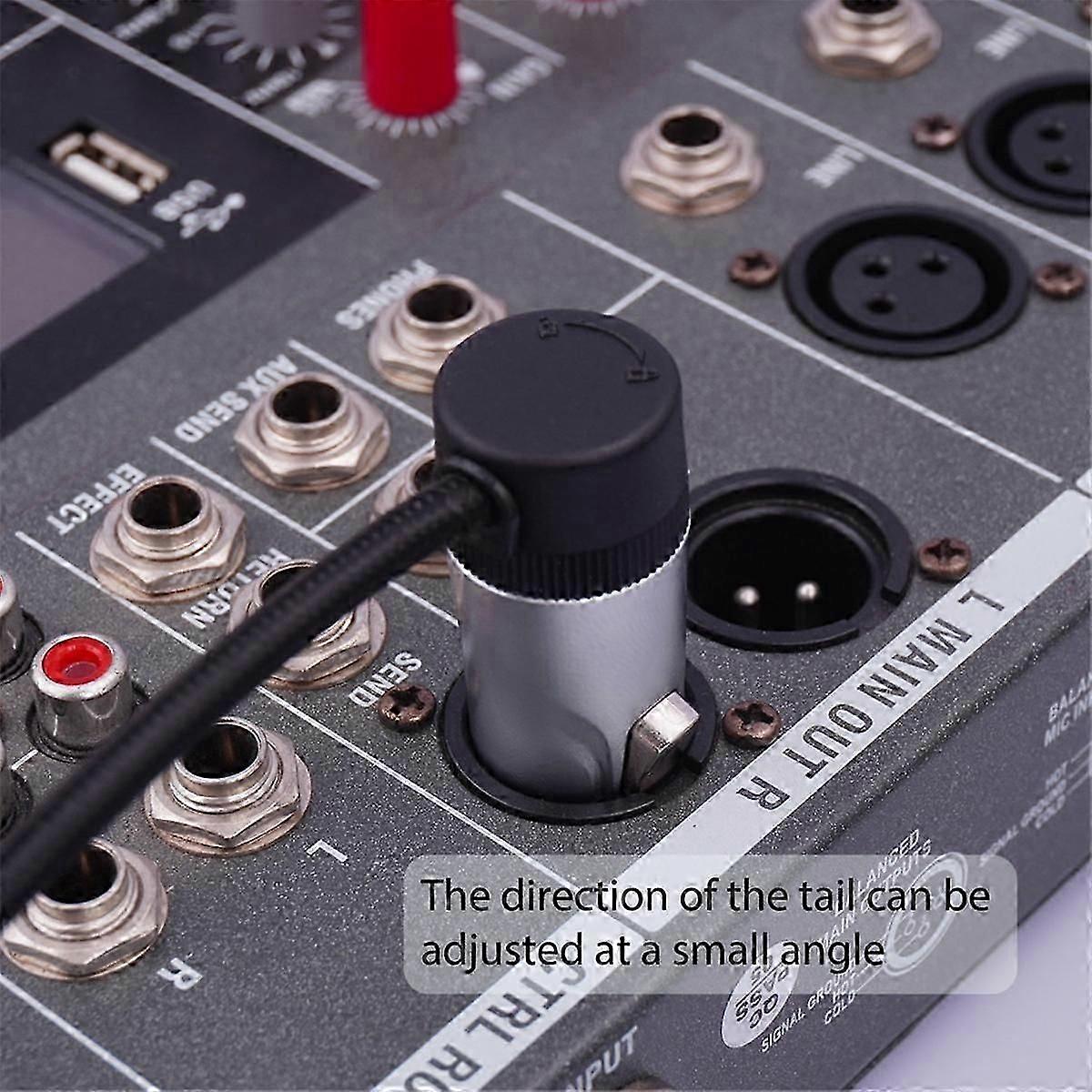 [Compact XLR Soldering Plug]Gold plated 3Pin XLR Microphone Cable plug adapter. Half the size of a typical XLR plug, compact and small enough to meet your connection needs in tight spaces. [Repair/DIY XLR Cable]Compact 3Pin XLR Adjustable Right Angle Audio solder plug. Great for quick fixes or DIY microphone XLR cables. [Thin XLR Cable Connector]Compact XLR microphone solder connector. Suitable for XLR/Microphone thin cables less than 5mm (0.19in) in diameter. [Angle Adjustable]90 degree right angle XLR Microphone Solder audio plug.Simply loosen the set screw to adjust the cable to your desired corner direction. This plug adopts a side outlet design, and after assembly, it can also be adjusted at a small angle by rotating the tail parts. It is very suitable for devices with small socket space on the back. The diameter of the tail rubber sleeve is 3mm, which can be used for 3.0-5.0mm wires. When the rubber sleeve is removed, the diameter is 7mm and can be used for 5.0-6.5mm wires. Product use: Suitable for making xlr microphone cables, cables. Microphone cables, etc. This model requires Installation precautions: Since this plug uses side outlet, you need to hold the tail plastic part and rotate it counterclockwise to remove the tail cover before tightening the plastic back shell. After tightening the plastic shell, determine the angle and press the tail cover tightly. When assembling, be sure to remove it first, then modify it, and then tighten the shell. If you do not remove the tail cover and tighten it directly, the wire rotate multiple times while the plug is fixed, which may cause the wire to be twisted off or the welding part to fall off. specifications: Male Material: Zinc copper gold plating+plastic colour: Black+silver Package Contents: 2 x XLR Soldering Plug Only the above package content, other products are not included. Note: Light reflection and different displays may cause the color of the item in the picture a little different from the real thing. The measurement allowed error is +/- 1-3cm.