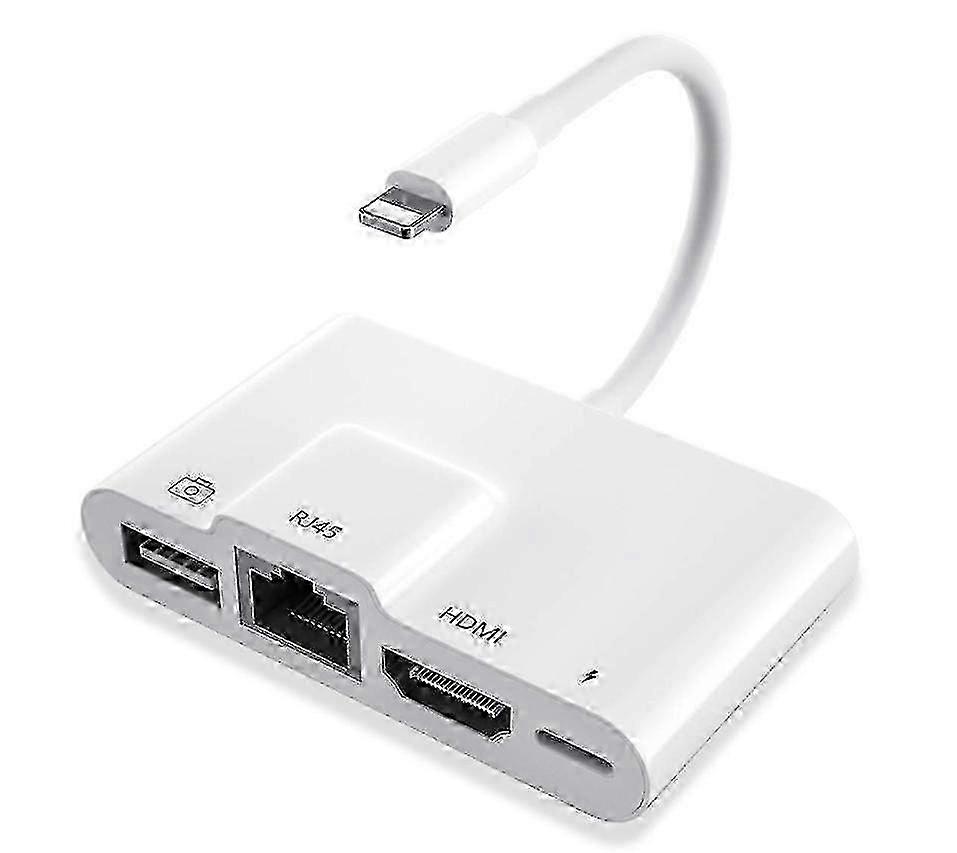 Lighting Digital AV 1080p 4 in 1 Phone to HDMI Adapter with 4K HDMI RJ45 Ethernet Wired LAN and USB Data Sync Camera Power Port for Phone 11 / X