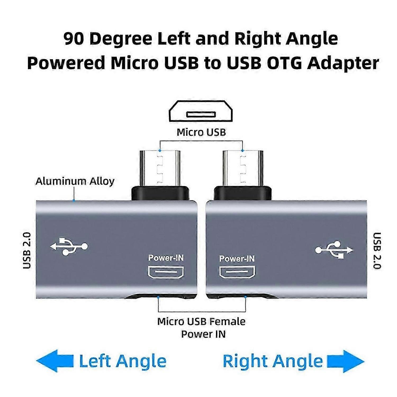 2Pcs OTG Adapter for 90 Degree Left/Right Angle Micro