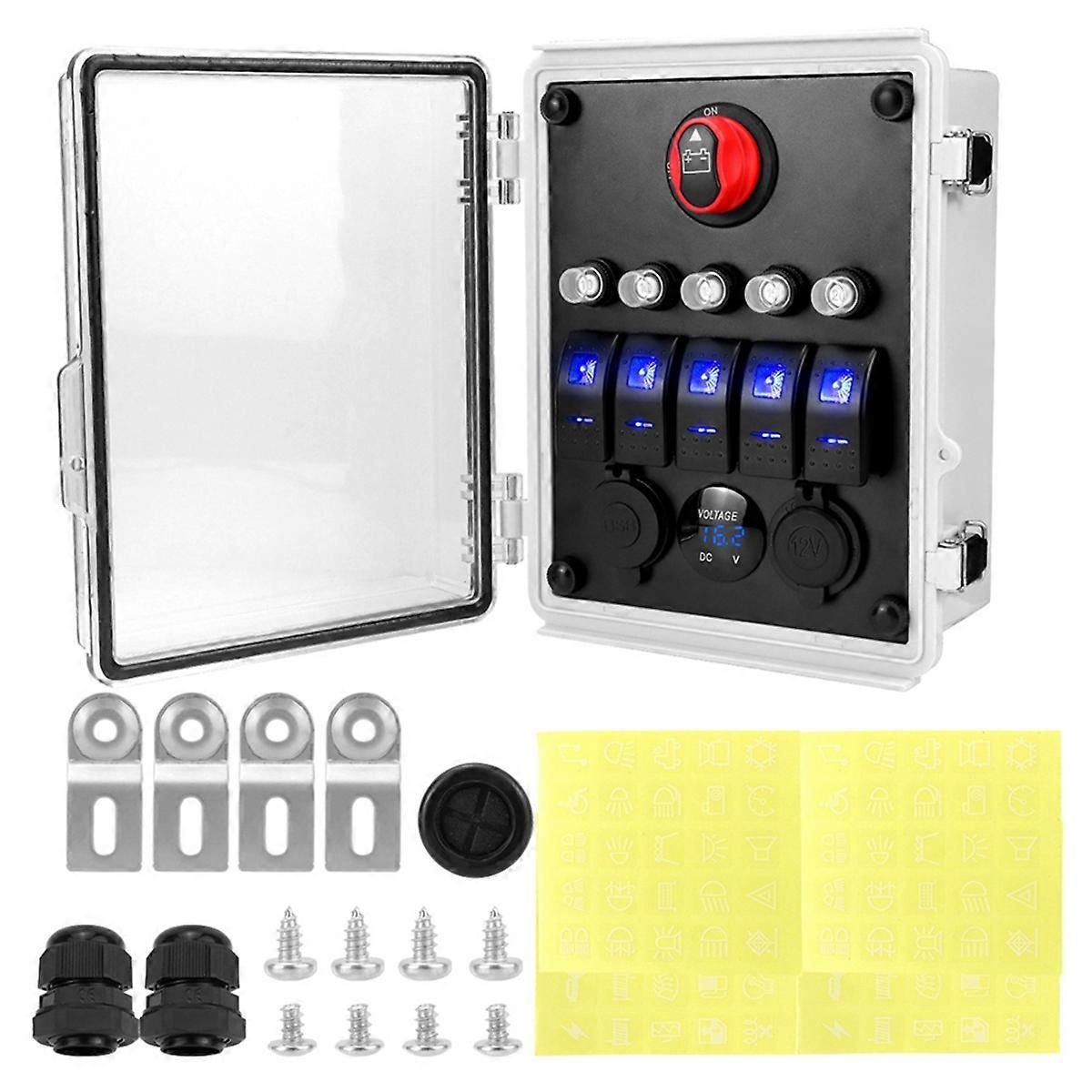 Rocker Switch Marine Toggle Switch Panel Box 5 Gang Waterproof LED Lighted with Breaker USB Charger