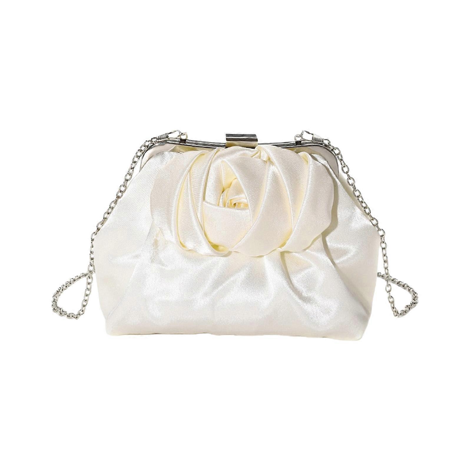 Sophisticated Rose Patterned Clutch Wristlet Handbag Shoulder Crossbody Purse For Evening Event And Weddings White