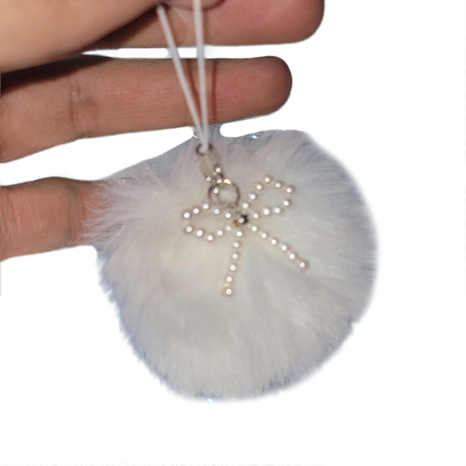 Sweet Cute Plush Ball Bowknot Phone Charm Straps Car Key Hangings Pendants Bag Decoration Lanyard Purse Accessories White