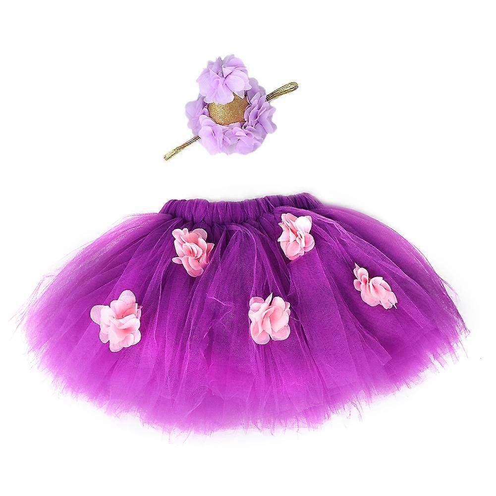 Sweet Newborn Infant Baby Girl Flower Bubble Skirt Headband Photography Prop Outfit(Purple)