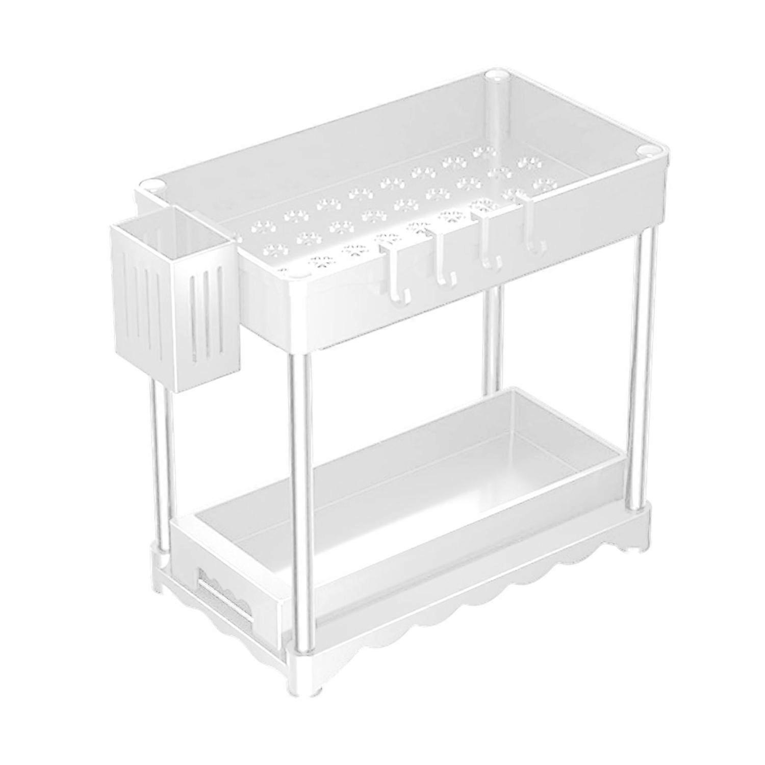 Efficient Double-Layer Drawer Design: Maximize space utilization with our under-cabinet storage featuring a double-drawer design. Easily access and organize cleaning supplies, medicine, and more, saving you time and effort on home organization tasks. Hollow Design for Drainage and Ventilation: Our plastic storage rack boasts a hollow structure that facilitates drainage and ventilation, ideal for under-sink or bathroom use. Say goodbye to moisture buildup and keep your items dry. High-Strength Plastic Construction: Crafted from durable high-strength plastic, our kitchen under-sink bathroom rack ensures long-lasting performance. Enjoy sturdy support for your essentials without worrying about wear and tear over time. Tool-Free Installation and Easy Maintenance: Effortlessly set up this under-sink shelf without any tools required. Its waterproof plastic material allows for easy cleaning – simply rinse or wipe to maintain its pristine condition effortlessly. Versatile Storage Solution: Not just for under-sink areas, this rack is perfect for bathroom and kitchen storage needs. Whether organizing toiletries, cleaning supplies, or pantry items, this versatile unit offers practical storage in various spaces. Description: Introducing our innovative storage rack, designed for optimal organization in your home. The unique double-layer drawer design maximizes space utilization, making it perfect for storing various items such as tableware, spice bottles, cleaning supplies, and more. This versatile rack is ideal for under-sink storage in the kitchen or bathroom. Crafted from high-strength plastic, this storage rack is built to last, ensuring long-term durability and reliability. The waterproof material makes it easy to maintain - simply rinse or wipe clean for a spotless appearance. No tools are required for installation, making setup quick and hassle-free. The hollow design of the rack allows for easy drainage and ventilation, preventing moisture buildup. The slide-out drawers provide convenient access to your stored items, while the safety lock ensures secure storage. Whether used as a kitchen under-sink organizer or a bathroom storage solution, this rack is suitable for various settings. Say goodbye to clutter and welcome a more organized space with our storage rack. Its mesh design promotes efficient drainage, making it an ideal choice for under-sink storage in kitchens and bathrooms. Prior to purchase, be sure to measure your space to ensure a perfect fit. Item Name: Storage Rack Material: Plastic Style: Modern And Simple Installation Method: Floor Type Features: Space-saving, 2 Tier, Easy-to-assemble, L-Shape Size Details: L: 40cm/15.75", W: 36cm/14.17", H: 30cm/11.81" (Approx.) Notes: Due to the light and screen setting difference, the item's color may be slightly different from the pictures. Please allow slight dimension difference due to different manual measurement. Package Includes: 1 x Storage Rack 1 x Storage Tube 4 x Hooks