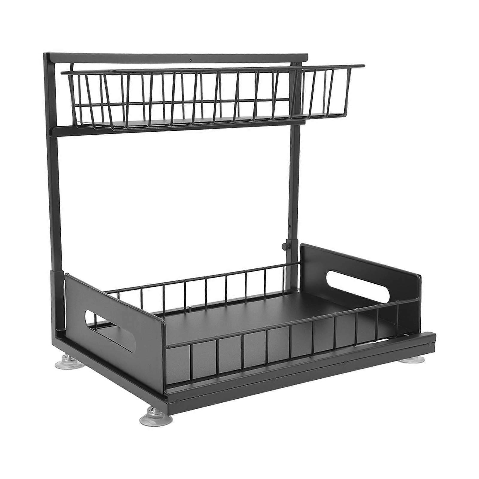 Under Sink Organizers and Storage Sliding Cabinet Basket Organizer 2 Tier Under Bathroom Storage Rack for Bathroom Kitchen Black