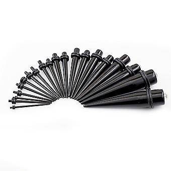 Stretching tapers kit black acrylic with cubic zirconia from 16g - 7/16 inch