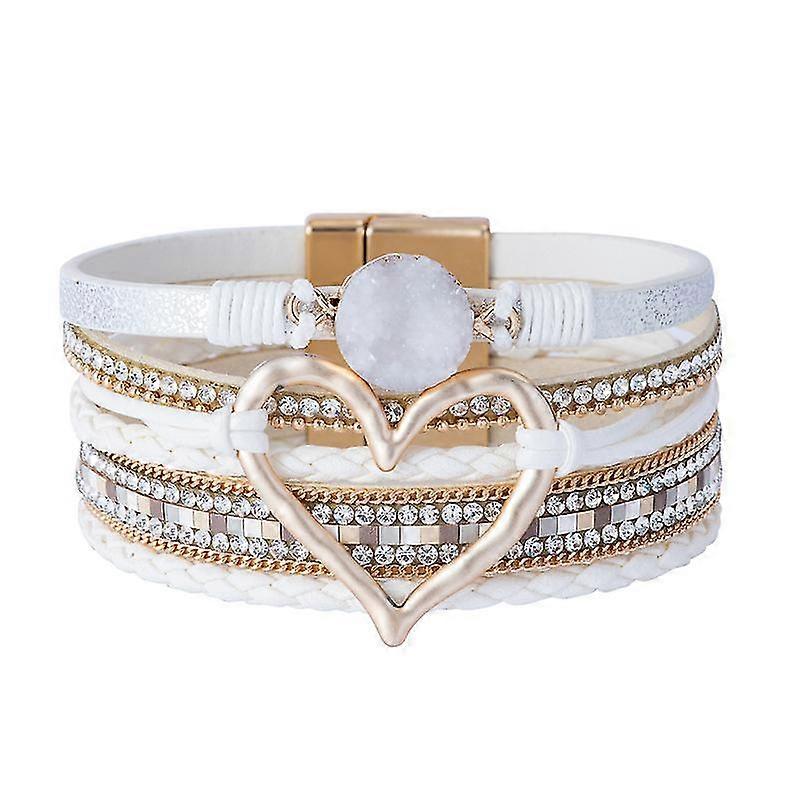 Metal Love Heart Charm Leather Bracelets For Women Fashion Rhinestone Braided Wrap Bracelet Bangle Female Jewelry