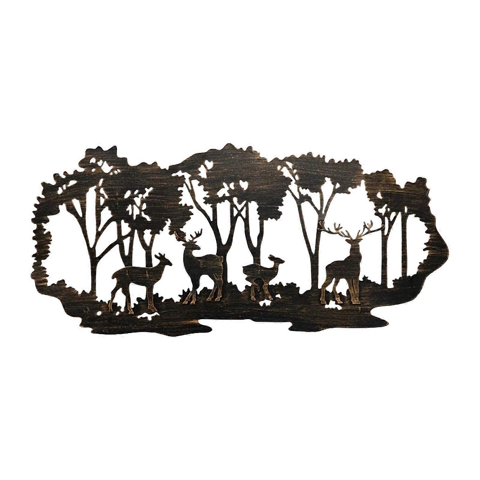 Metal Wall Art Decoration Deer in The Forest Sturdy Material for Living Room