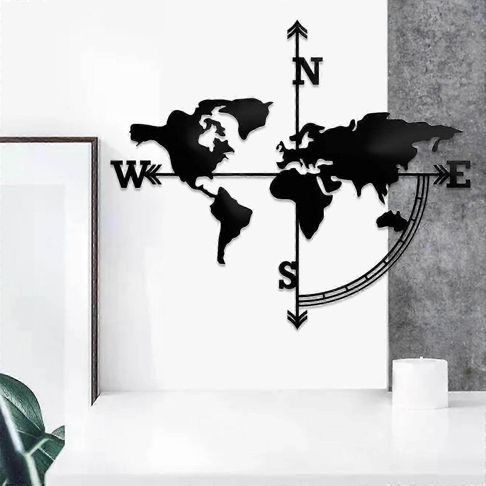 Metal Black World Map Wall Decor Boho Style for Bedroom