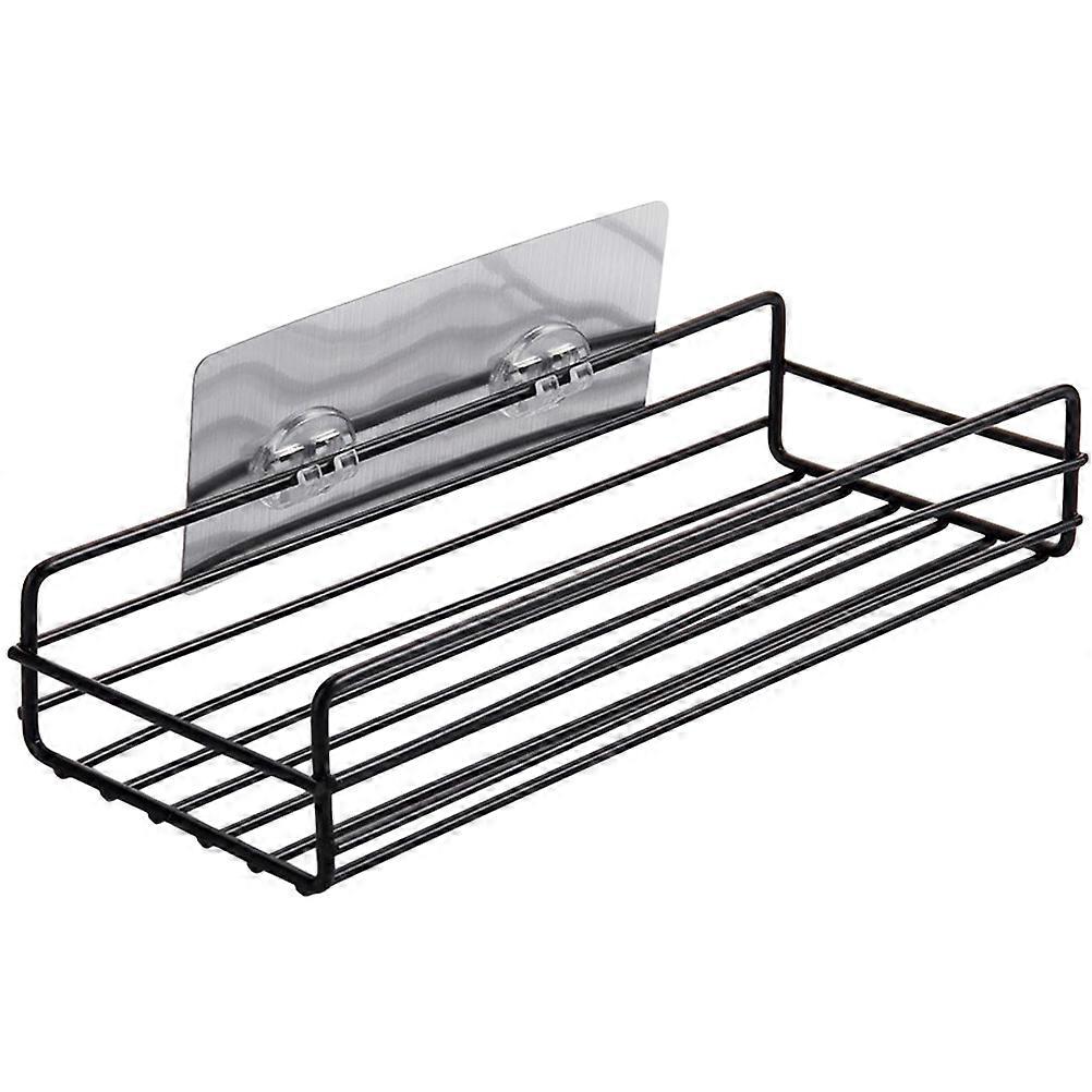 Wrought Iron Storage Rack Punch Free Storage Shelf Wall-Mounted Multifunctional Kitchen Bathroom Organizer (Black)