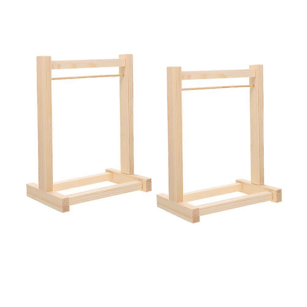 Miniature Doll Clothes Rack Clothes Display Rack Dollhouse Accessories Wooden Khaki for Clothes Storage 2Pcs