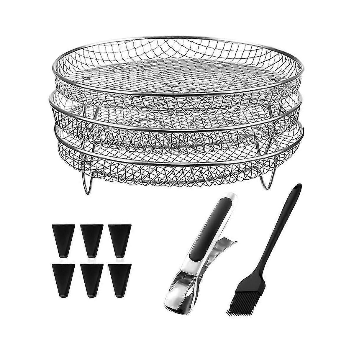 Air Fryer Rack Stainless Stackable Grid Grilling Rack For Ninja Air Fryer Basket+heightening Feet Dish Clamp Oil Brush