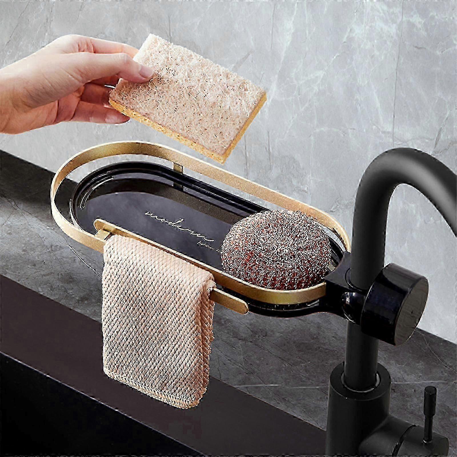 Kitchen Faucet Storage Sponge Holder Rack, Bathroom Shower Soap Rod Hanging Rack, Kitchen Sink Organizer