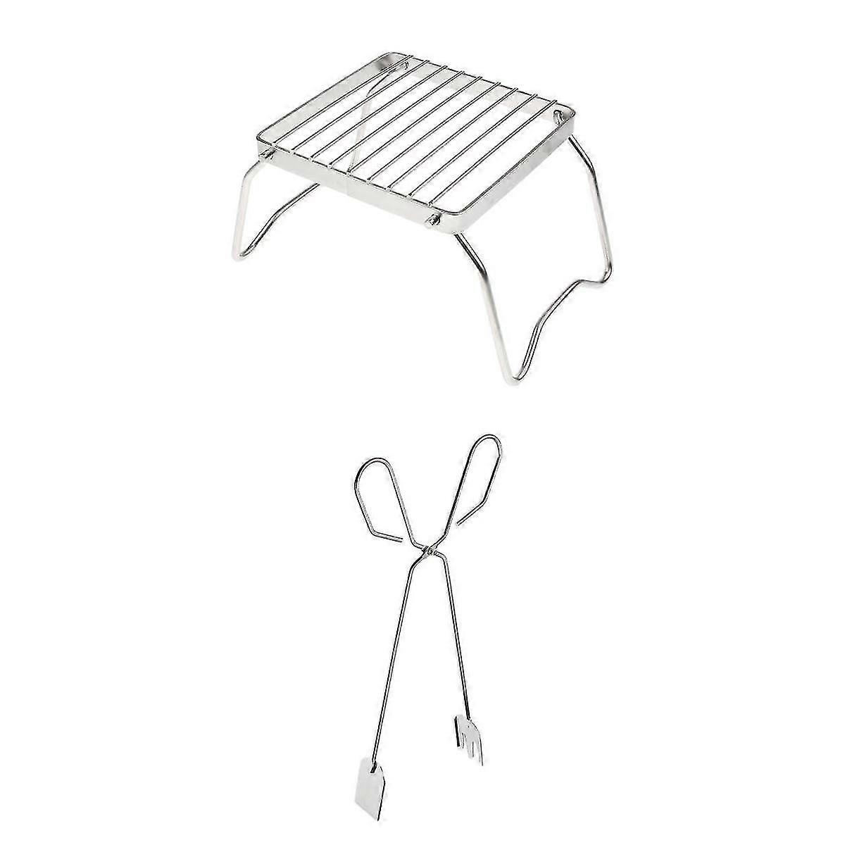 Outdoor Foldable Stove Stand Rack Camping Pot Bracket Holder + Food Clamp