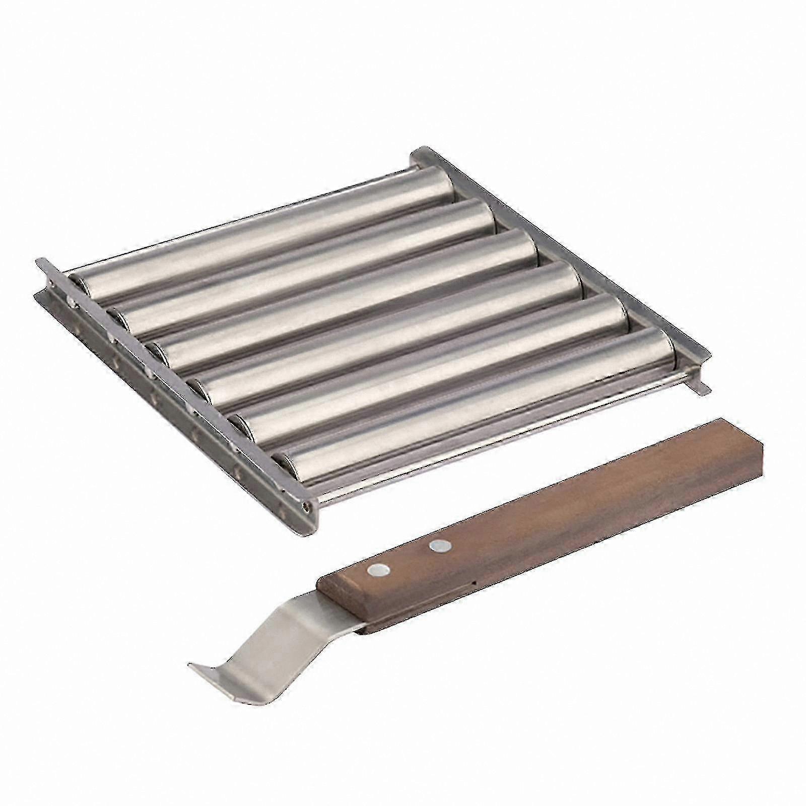 Stainless Steel Sausage Roller Rack with Wood Handle for BBQ Hot Dogs