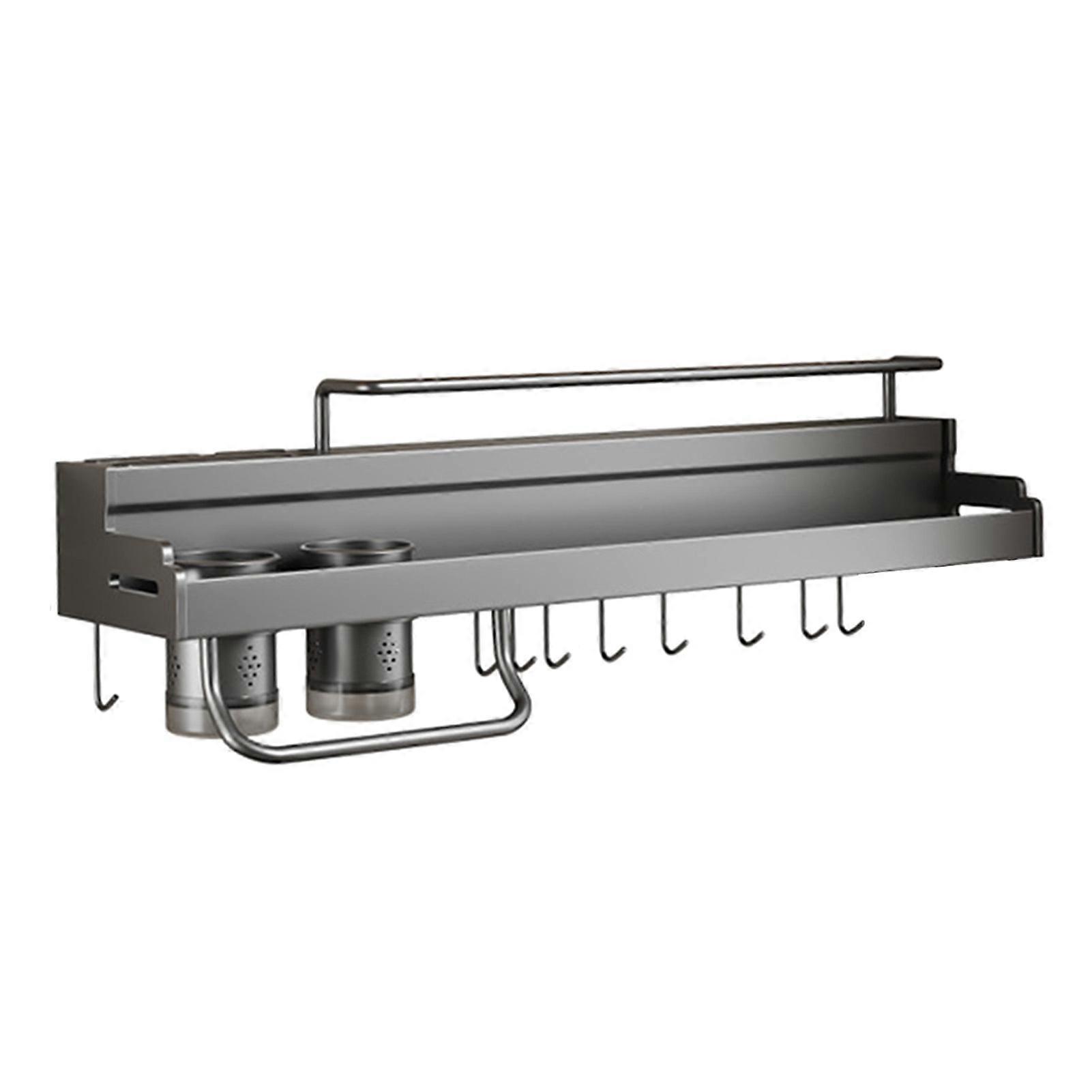 Wall Mounted Spice Rack Kitchen Utensils Storage Shelf for Condiment Chopstick 40CM Single Cup 4 Cutter Slots 8 Hooks