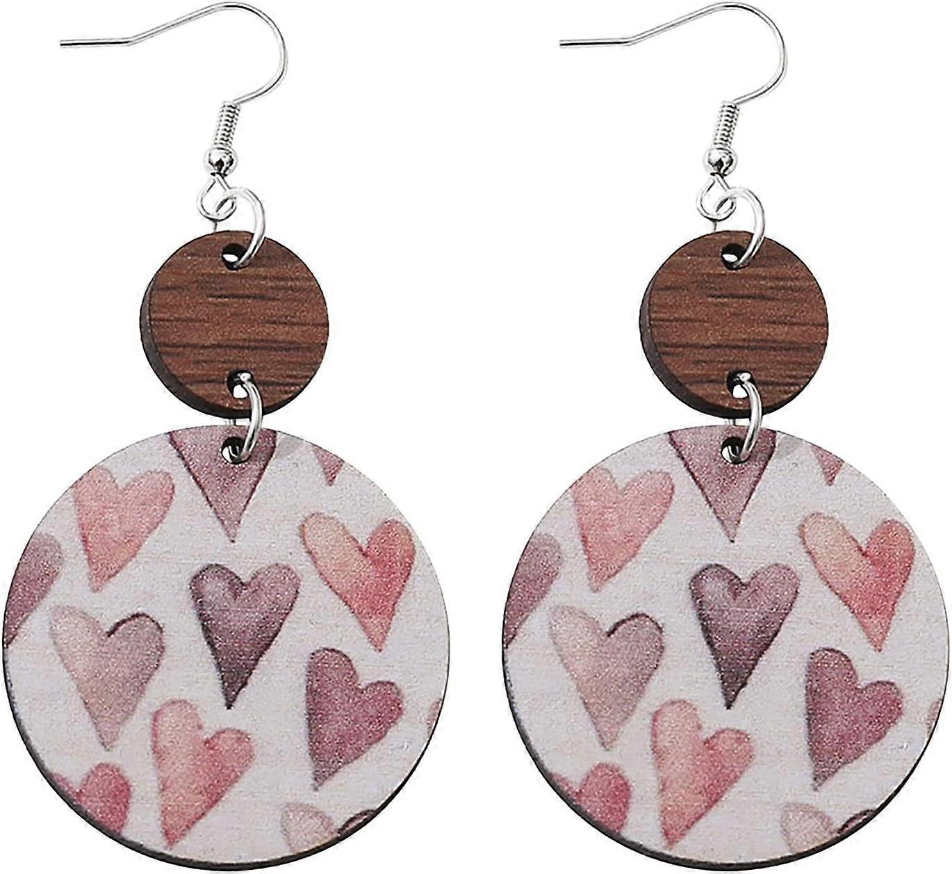 Valentines Day Gift Gradient Hollow Out Love Earrings Double Sided Wooden Earrings to Wear Decorative Girls Gifts Long Earrings (Pink-E One Size)