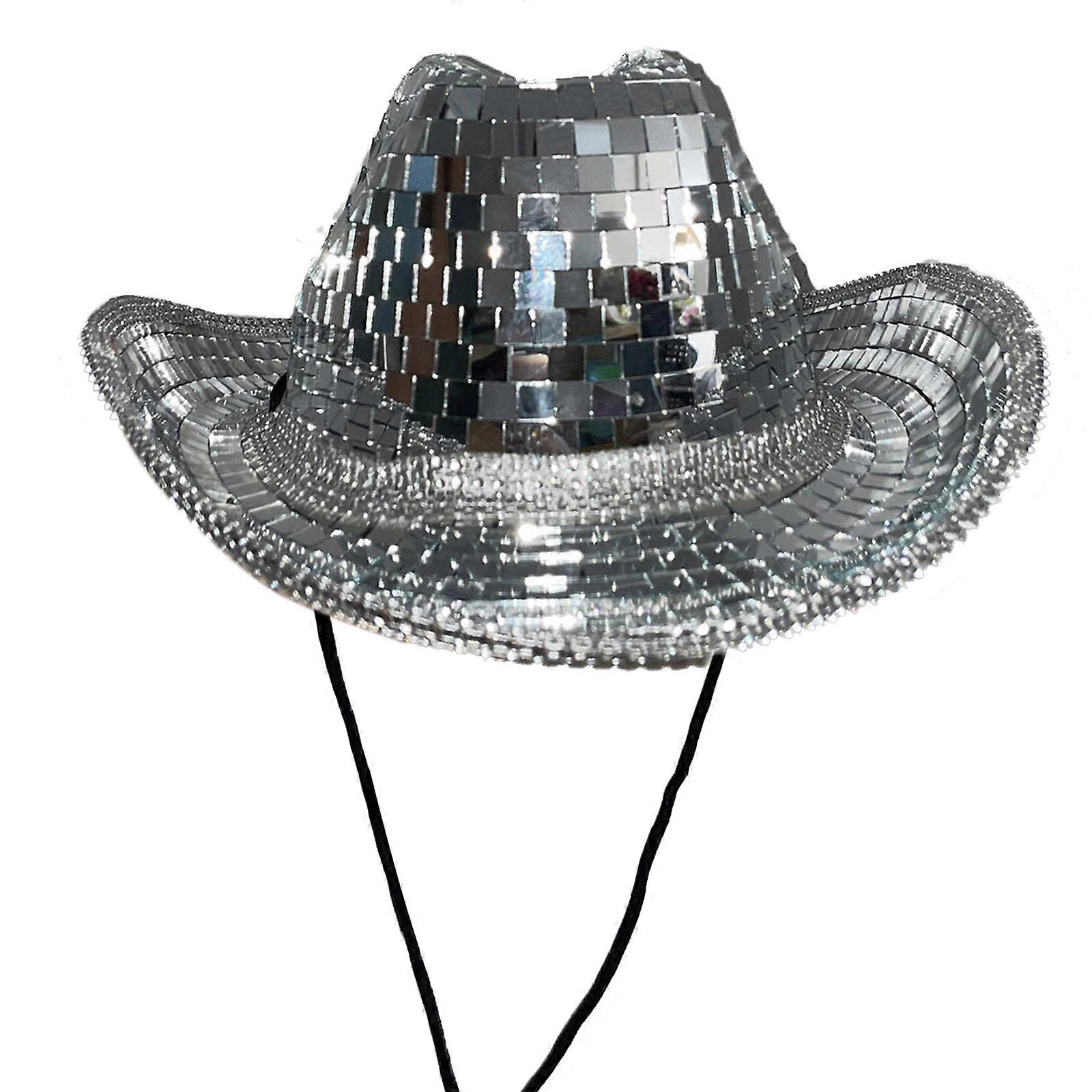 New Year Gift Disco Ball Cowboy Hat Multipurpose Head Cap Ornament Household Supplies for Children Girl Birthday Holiday Silver