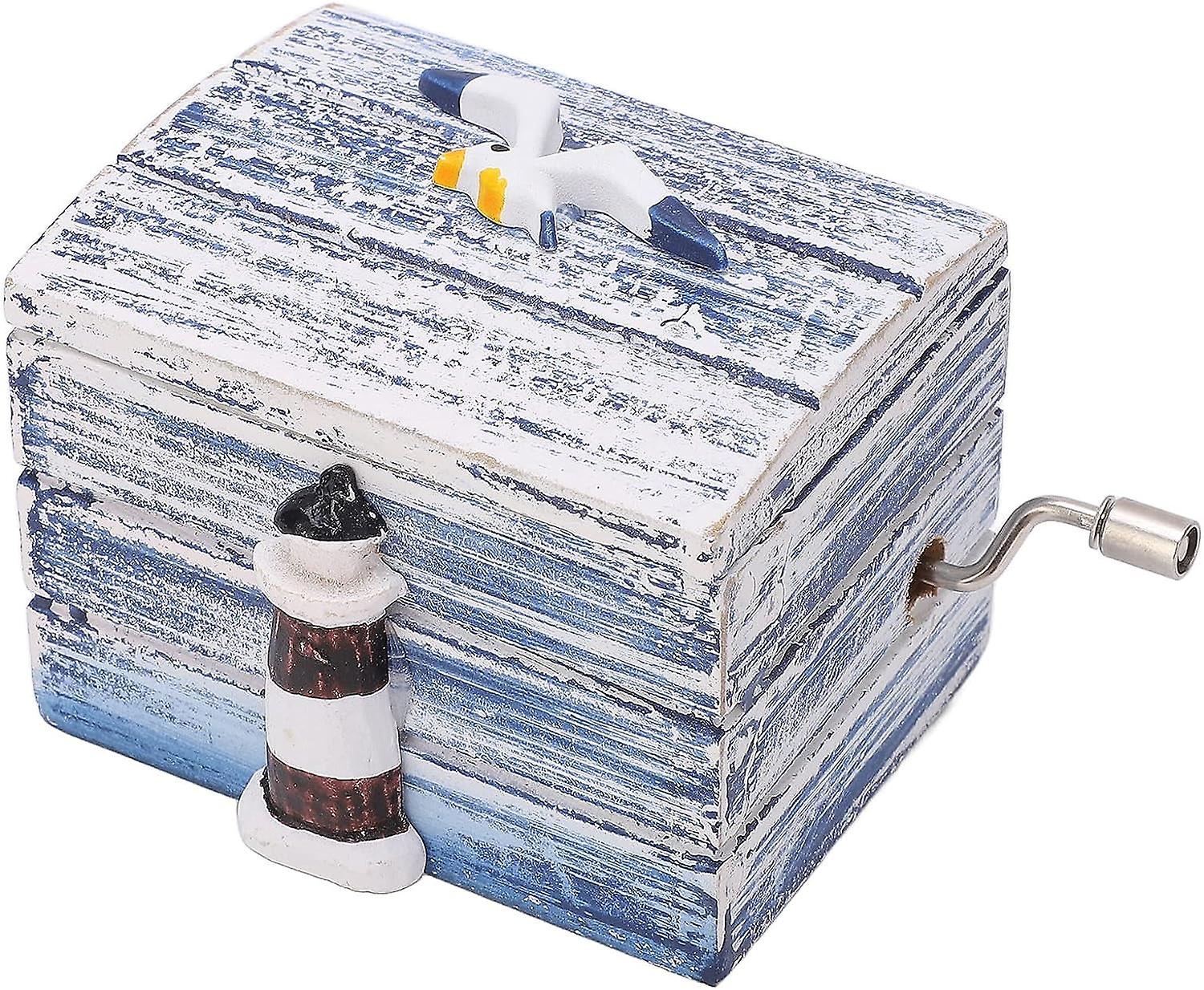 Small Gift For Children Mediterranean Hand-operated Music Box Wooden Mini Music Box Sky City Gift (lighthouse)