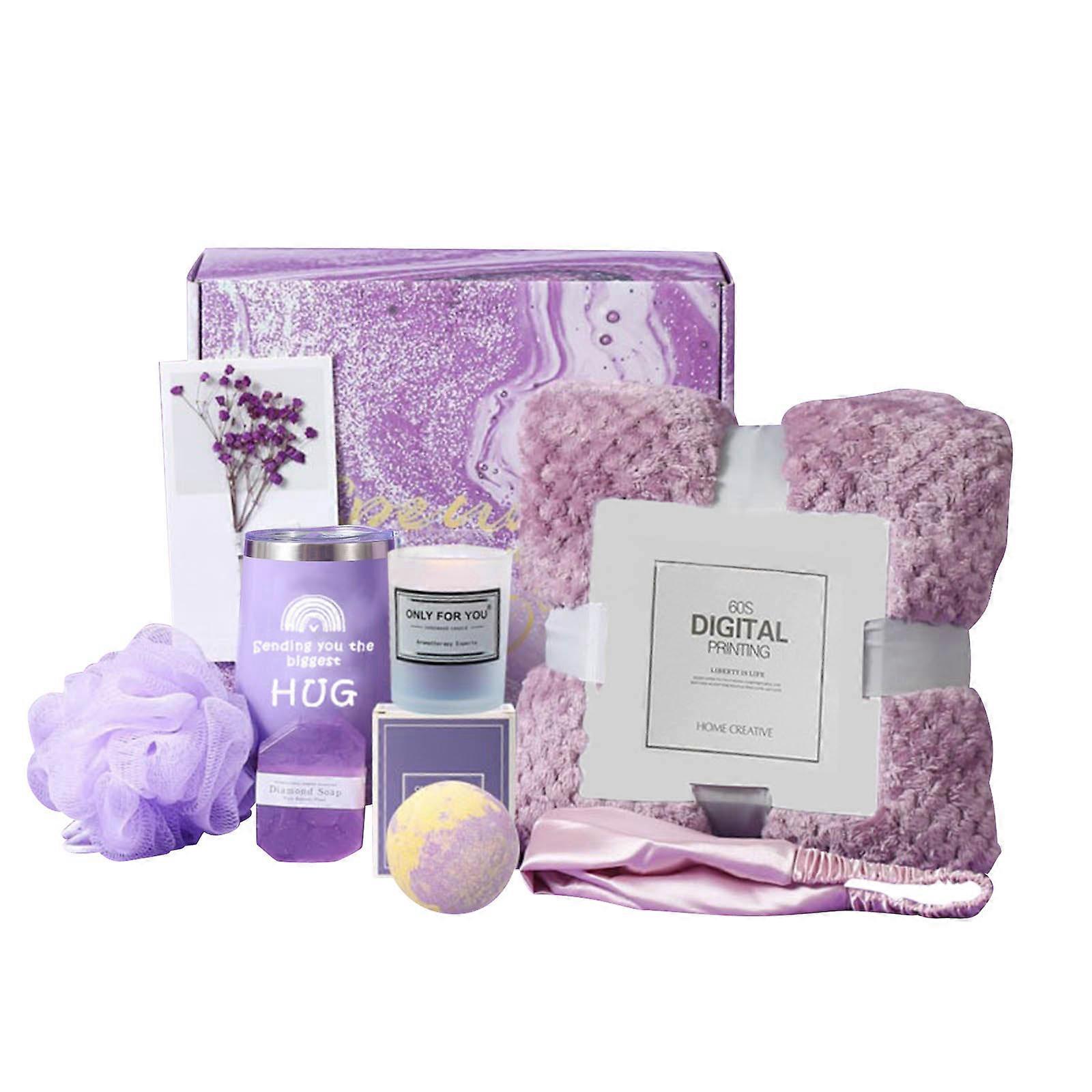Birthday Gifts for Women, Get Well Soon Gifts, Green Self Care Gifts Relaxing Spa Gifts Basket with Luxury Flannel Blanket, Womens Gifts for Christmas